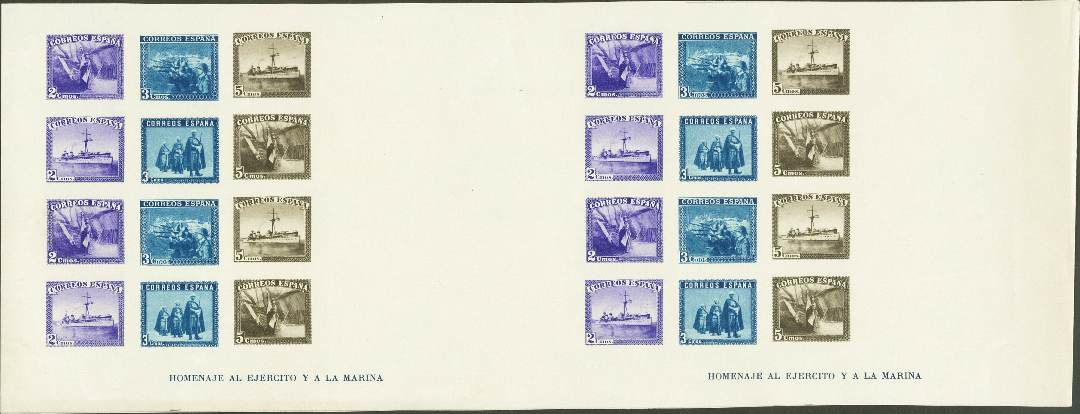 (★) 850P(2). 1938. Two UNTOOTHED block leaves, in pairs without cutting. Variety WITHOUT IMPRESSION OF ORANGE and GREEN COLORS. MAGNIFICENT AND RARE.