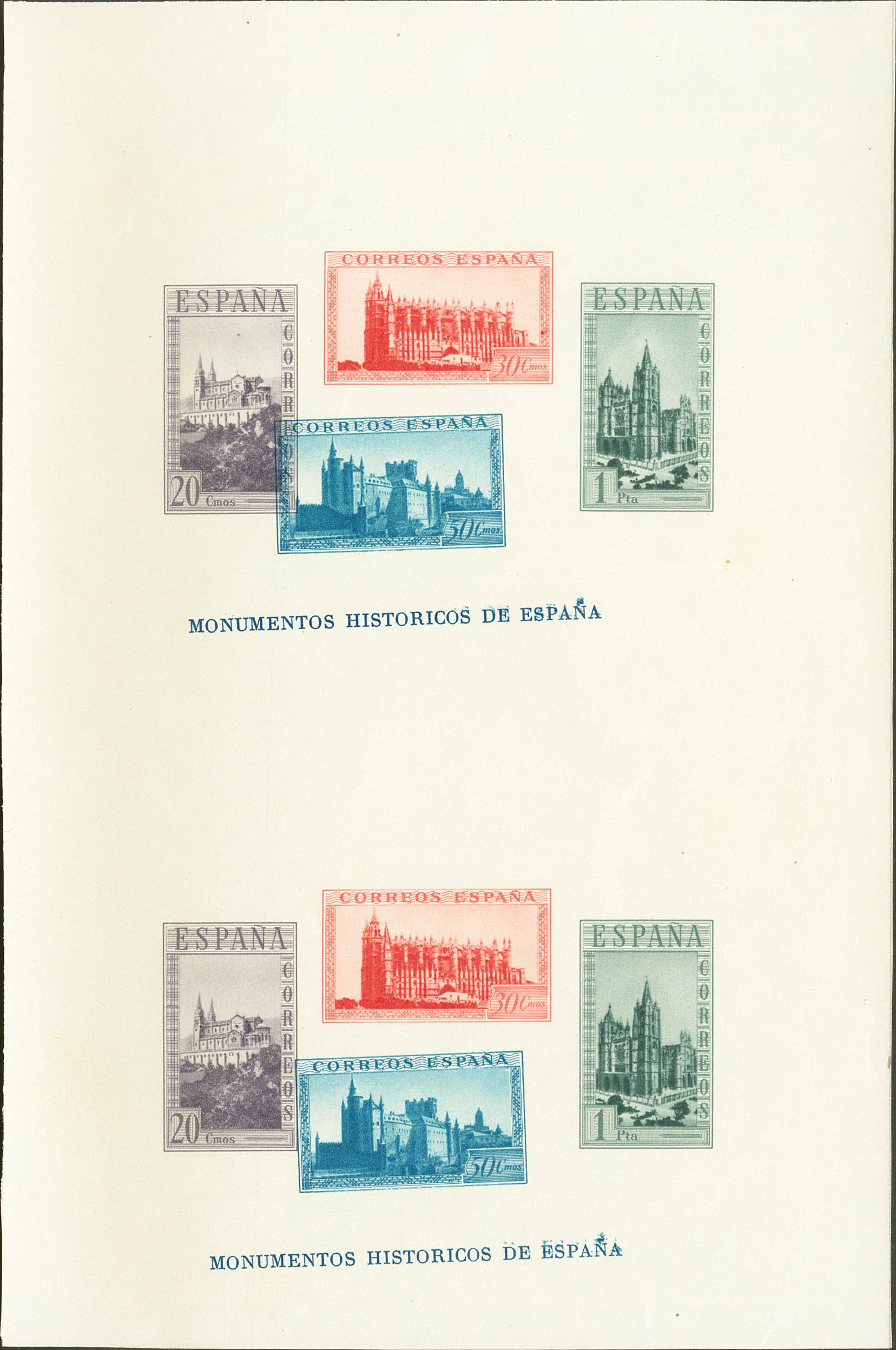 (★) 848P(2). 1938. Two UNTOOTHED block leaves, in a vertical pair (uncut). DISPLACED BLUE COLOR variety. MAGNIFICENT AND RARE.