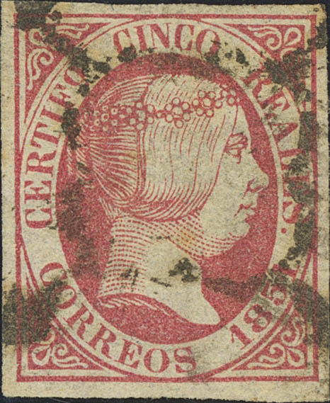 9. 1851. 5 reales rosa. MAGNIFICENT. Cert. EMF.