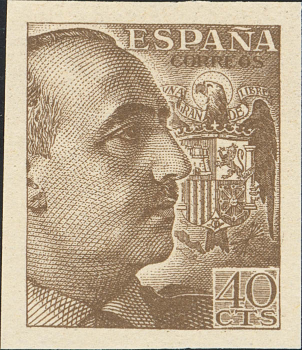 ★★ 925ccas. 1940. 40 cts castaño. CAMBIO DE COLOR y SIN DENTAR. MAGNIFICO. Edifil 2021: 260 Euros