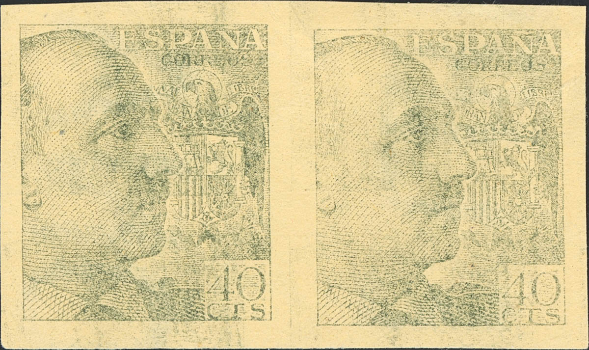(★) 925P(2). 1939. 40 cts verde gris, pareja. ENSAYO DE COLOR y SIN DENTAR, impresión difuminada. MAGNIFICA.
