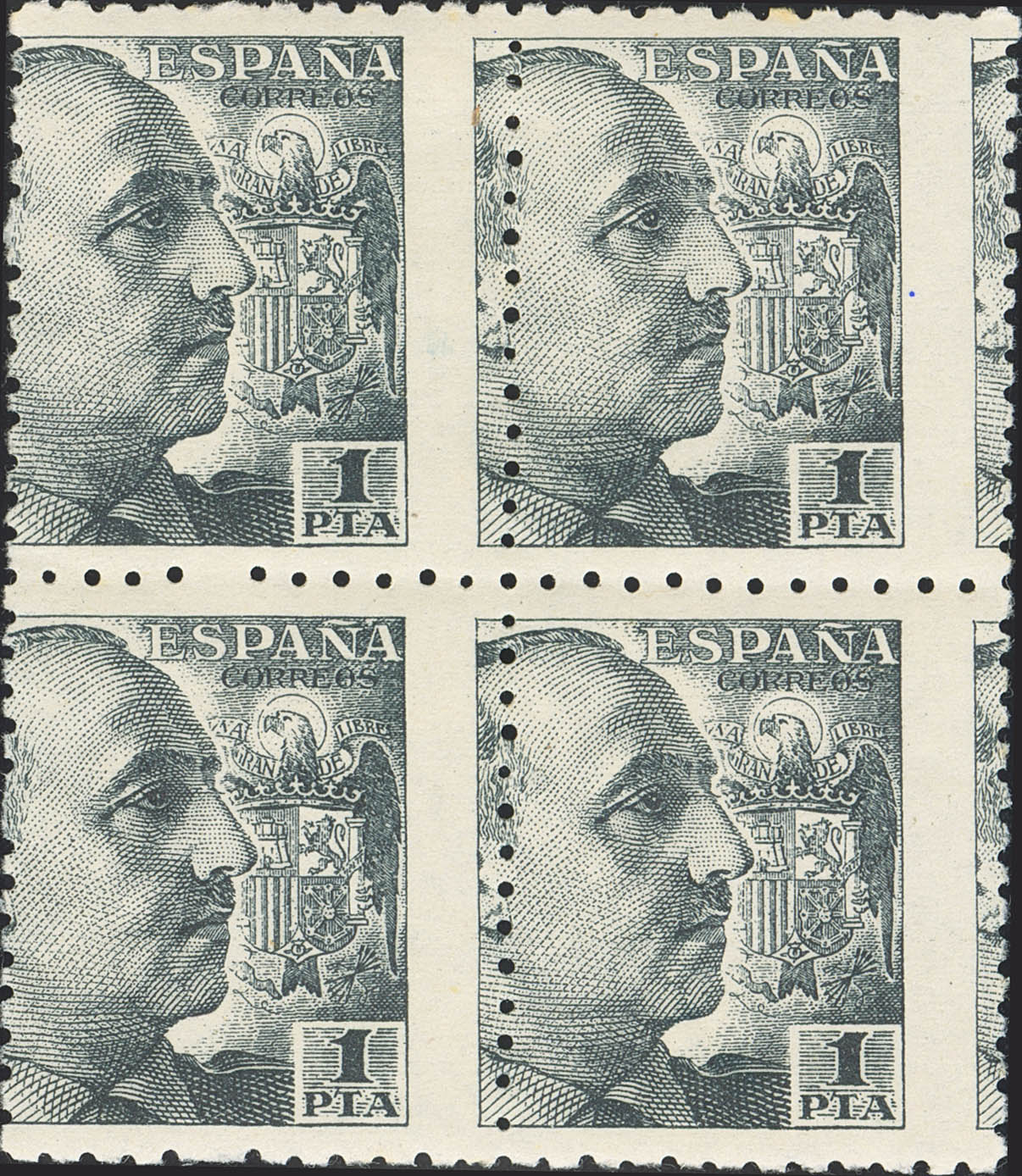 English ★★/★ 930dv(4). 1939. 1 sts black, block of four. DISPLACED VERTICAL TOOTH. MAGNIFICENT. Edifil 2021: +148 Euros