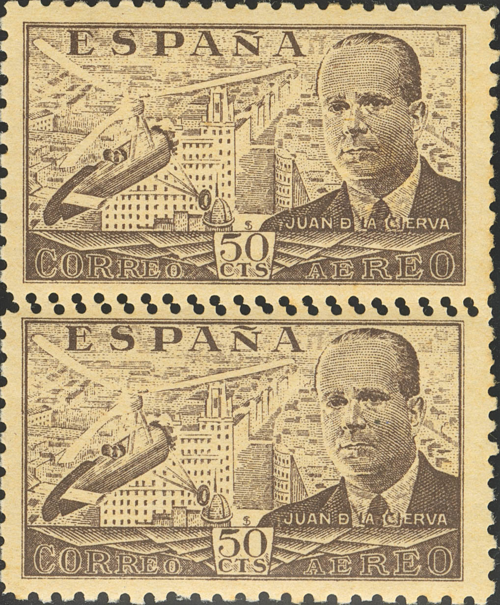 ★★ 943ddv(2). 1941. 50 cts castaño, pareja. DENTADO DOBLE. MAGNIFICA. Edifil 2021: 34 Euros