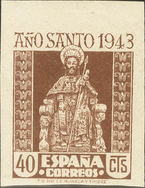 ★ 962s. 1943. 40 cts chestnut, leaf edge. WITHOUT TOOTH. MAGNIFICENT. Cert. EMF. Edifil 2023: 425 Euros