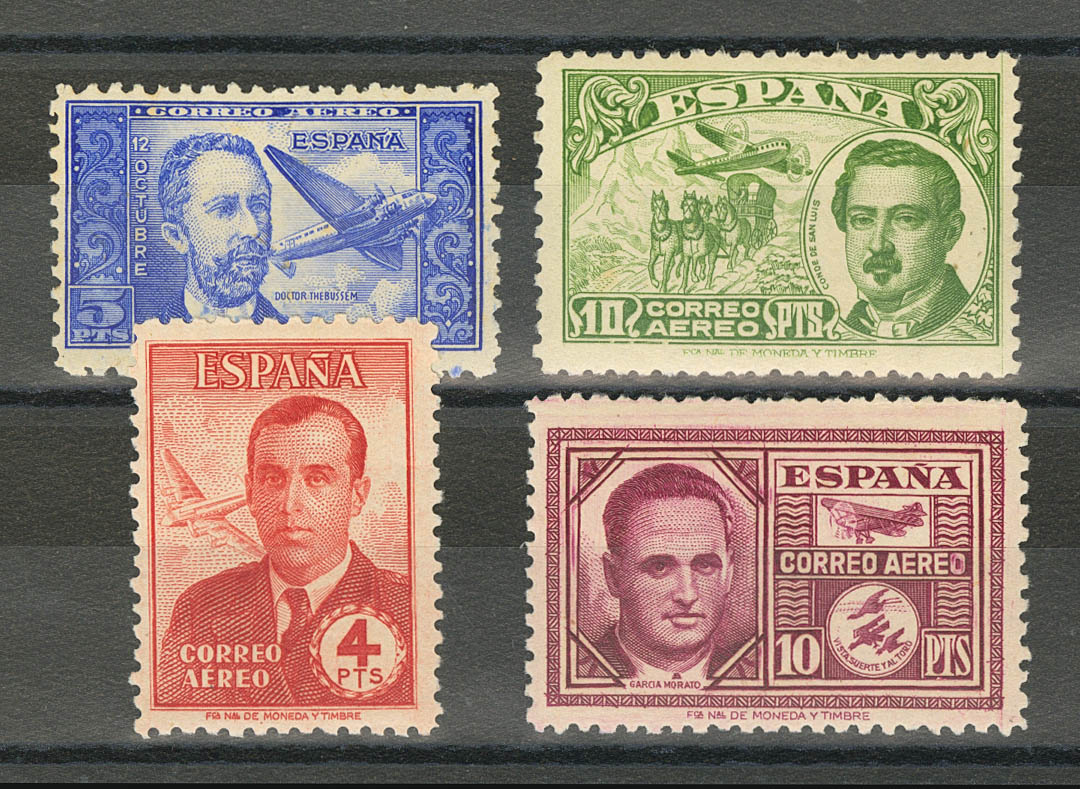 English ★★/★ 983N, 990N, 991/92N. 1944. 5 pts ultramarine, 10 pts green and complete series. NºA000000. MAGNIFICENT. Edifil 2021: 184 Euros