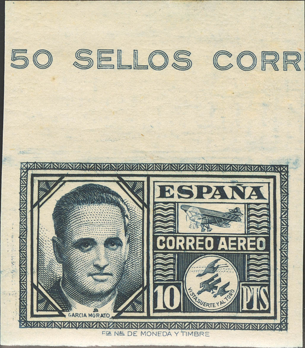 ★★ 992ccas. 1945. 10 pts dark blue, top sheet edge with marginal inscription. COLOR CHANGE and UNTOOTHED. MAGNIFICENT AND VERY RARE, UNCATALOGED. Cert. EMF.