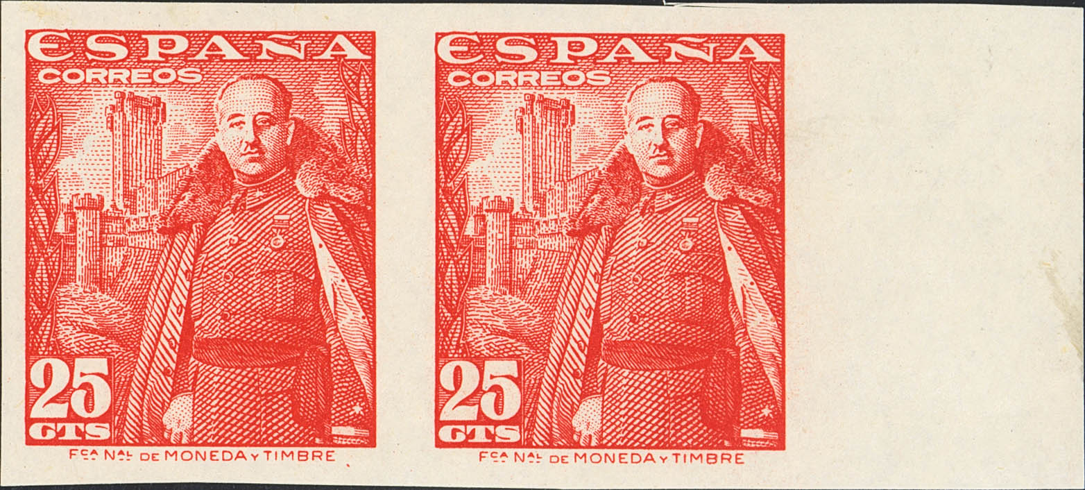 ★★ 1024s(2). 1948. 25 cts rojo, pareja, borde de hoja. SIN DENTAR. MAGNIFICA. Edifil 2024: ++332 Euros
