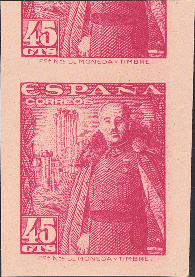 (★) 1028. 1948. 45 cts rosa. IMPRESO SOBRE MACULATURA (al dorso impreso el mismo sello). MAGNIFICO.