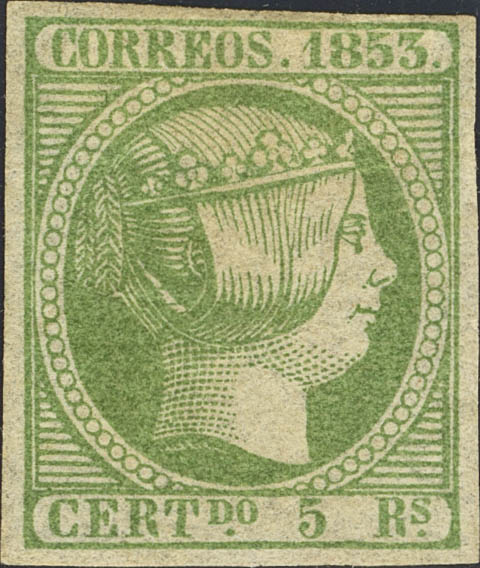 (★) 20. 1853. 5 reales green (washed postmark). MAGNIFICENT PRESENCE.