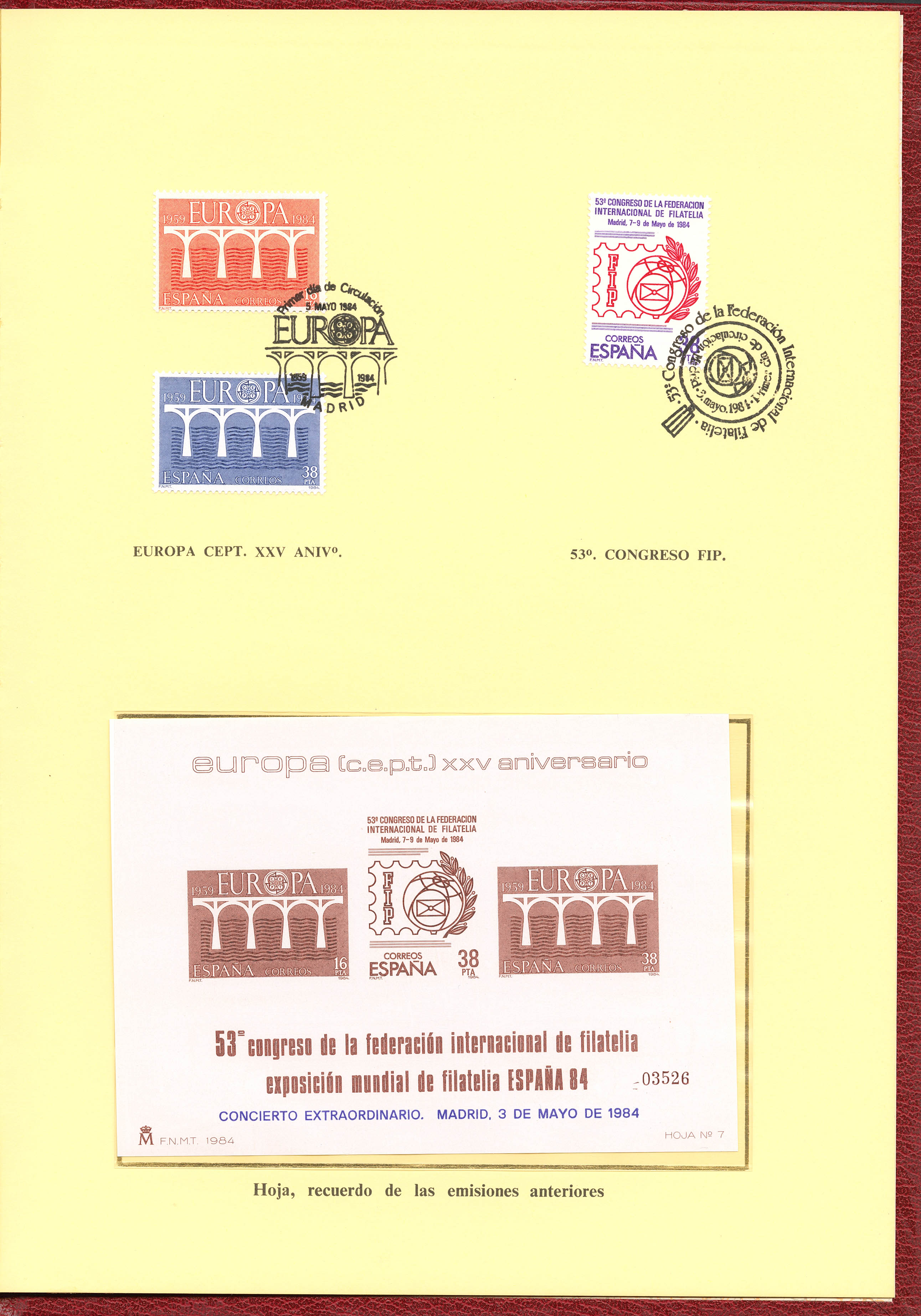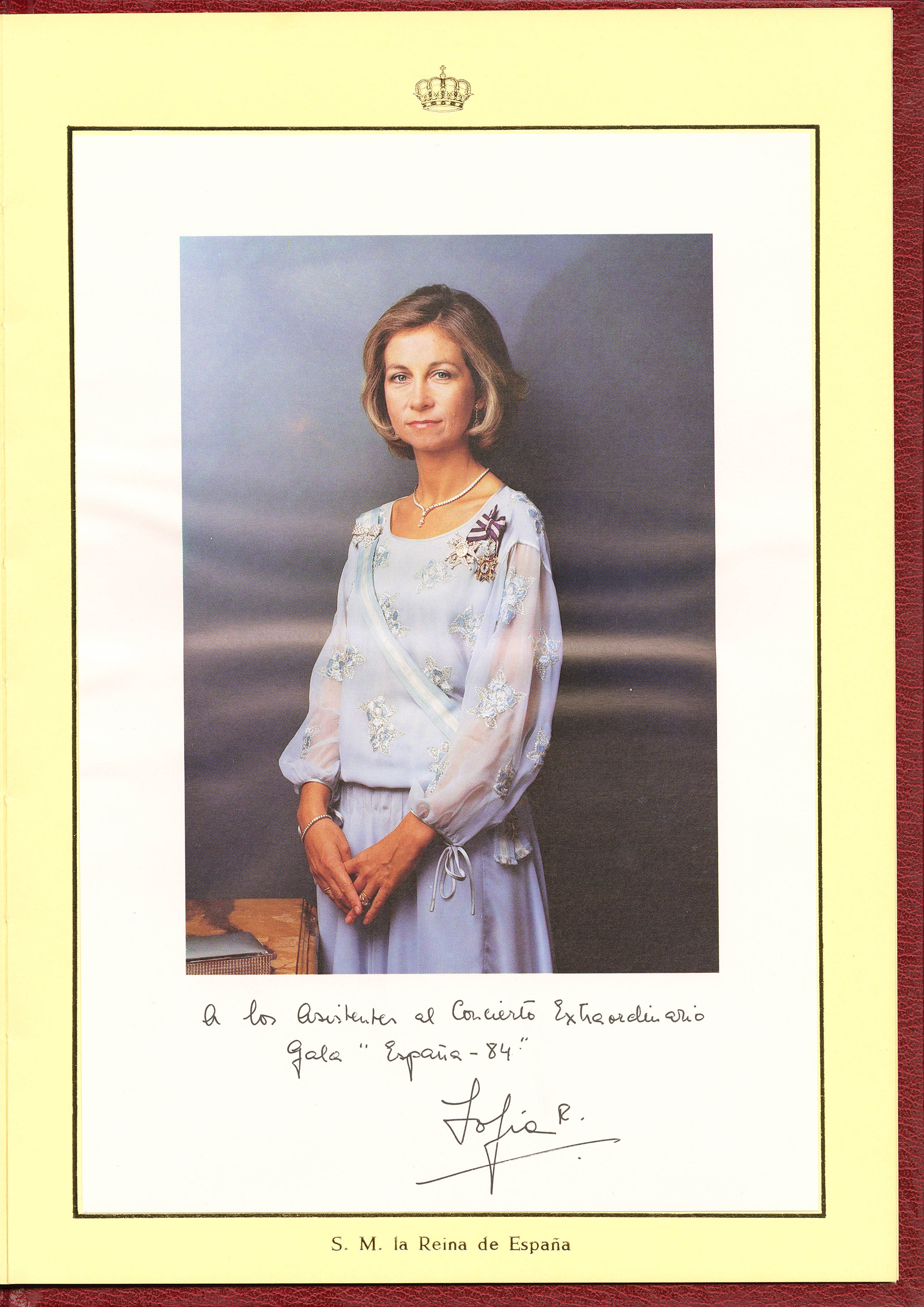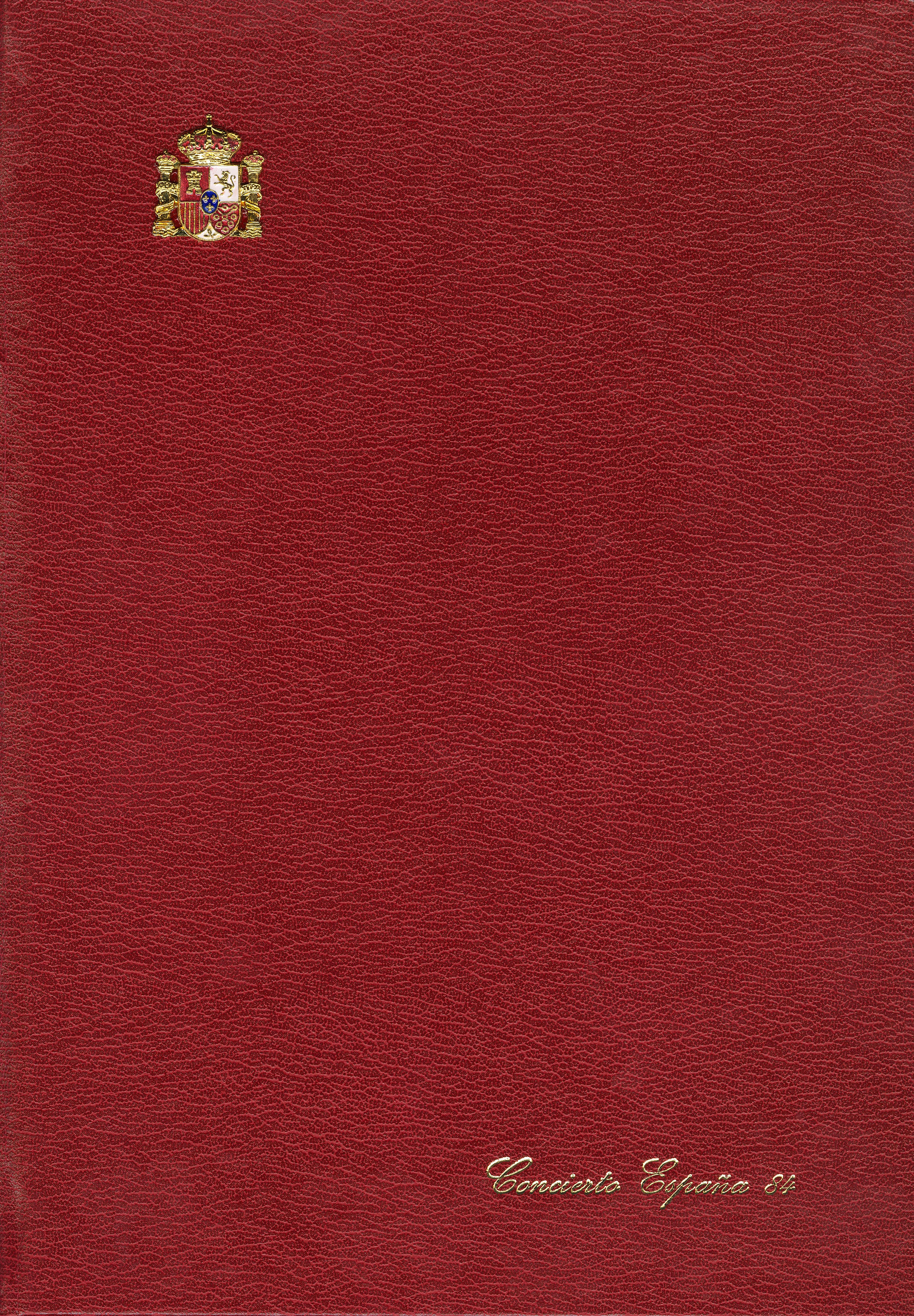 ★★ 6/7P. 1984. Complete folder with the metallic Real Escudo , containing the Luxury Tests of Spain 84, overloaded on the occasion of the Extraordinary Concert in Madrid, May 3, 1984. MAGNIFICENT AND RARE. Edifil 2017: 500 Euros