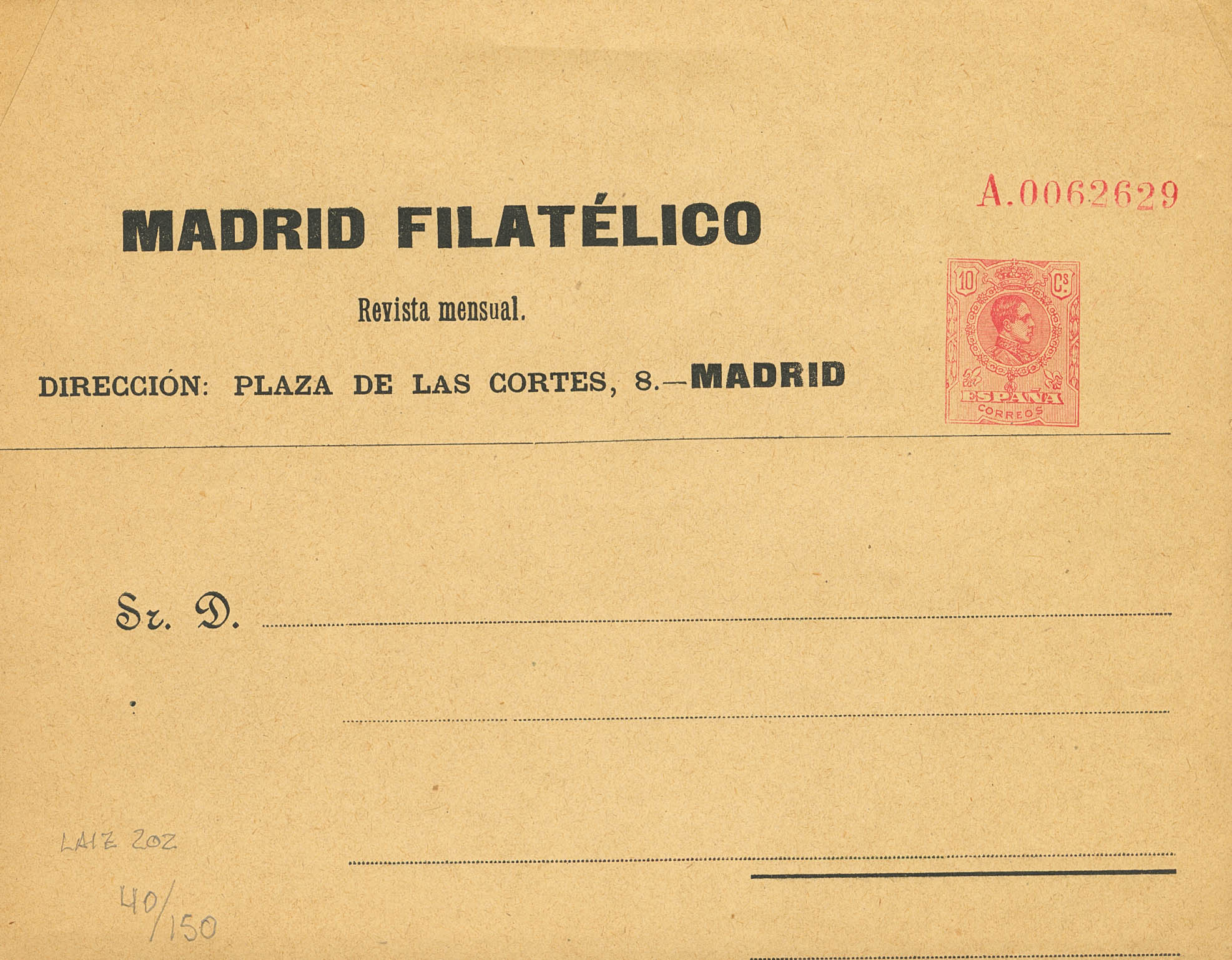 (★) EP202. 1910. 10 cts pink on a Private Postal Entire Newspaper Band MADRID PHILATELIC. MAGNIFICENT AND RARE. (Pencil, 150 euros)