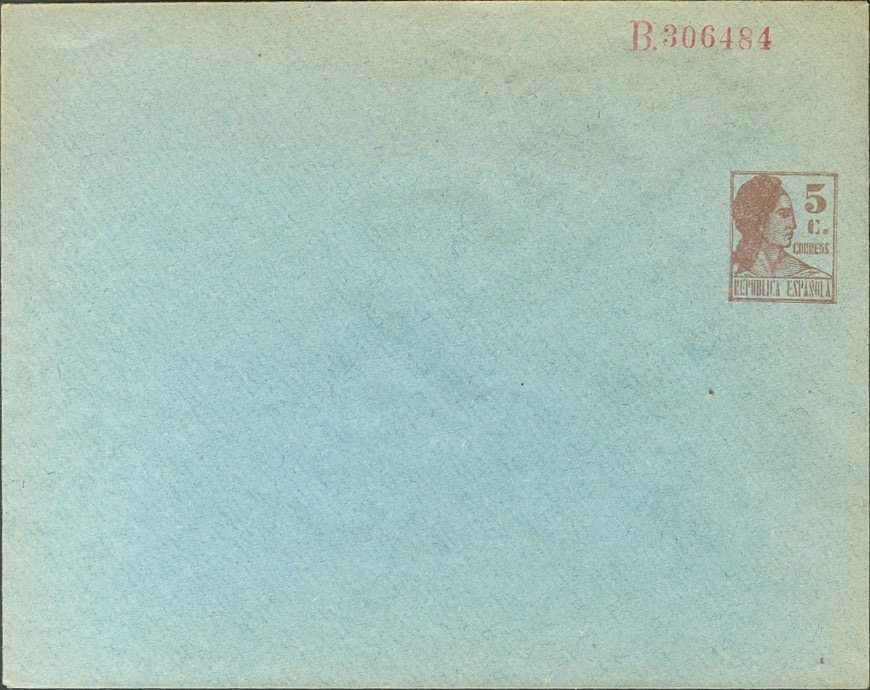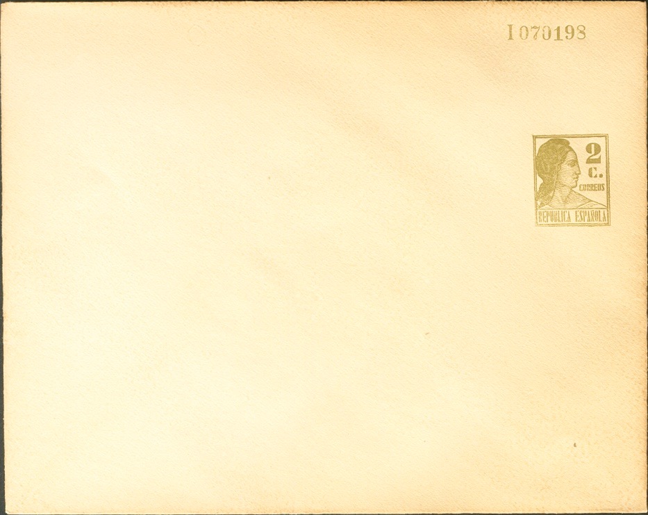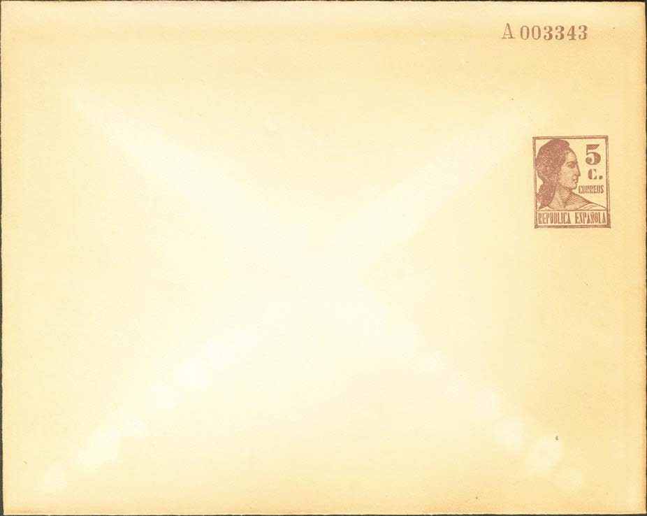 (★) EP1109,1153/54,1168,1275,1289. 1931. Set of ten Entire Private Postal Envelopes of Matrona of 2 cts, 5 cts (repeated in another color of envelope), 10 cts, 30 cts (without Correos inscription), 40 cts, 50 cts, 1 pts and 4 pts (repeated with numbers in different colors). MAGNIFICENT. (Láiz 2006: 1710 Euros)