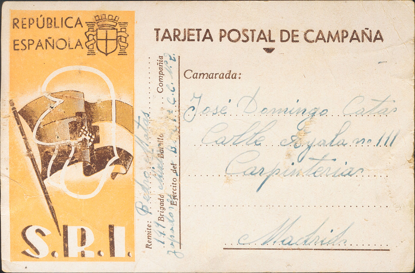 1938. Set of two SRI campaign Postcards circulated to MADRID (slight defects). PRETTY. (Allepuz 3)