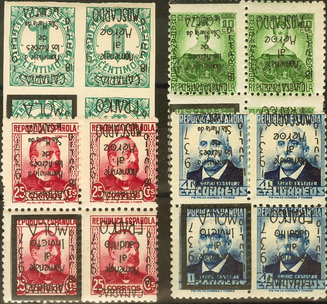 ★★ 15hi, 17hi/19hi. 1937. Serie completa, a falta del 2 cts castaño. SOBRECARGA INVERTIDA. MAGNIFICA.