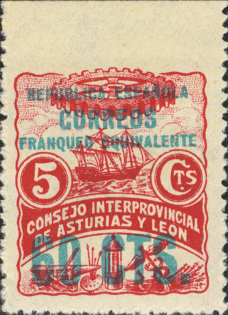 ★★ 10sms. 1937. 60 cts sobre 5 cts rojo. SIN DENTAR EL MARGEN SUPERIOR. MAGNIFICO. Edifil 2017: 85 Euros