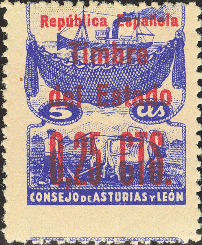 ★★ NE3. 1937. 25 cts on 5 cts blue. DISPLACED VERTICAL TOOTH. MAGNIFICENT.