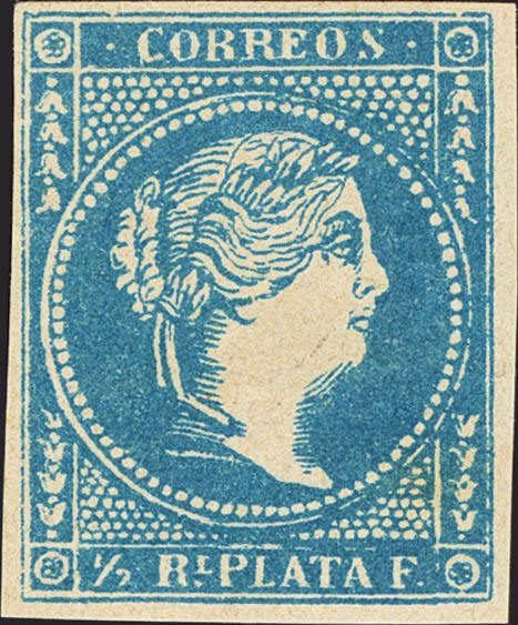 (★) Ant.7F. 1857. ½ blue real . FAKE POSTCARD (Type-I, fake from Havana). MAGNIFICENT.
