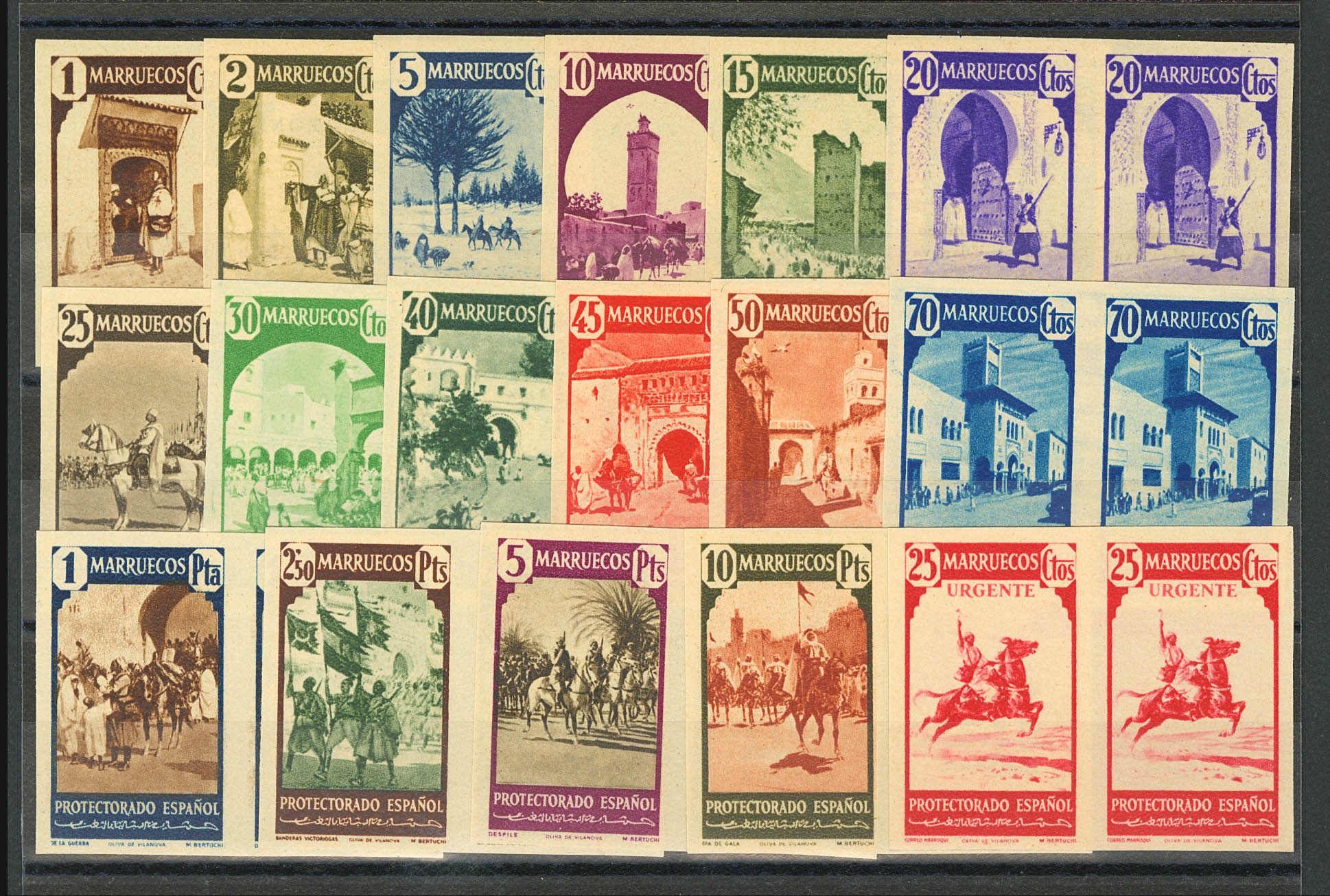 (★) 200/16M(2). 1940. Complete series, pair. UNTOOTHED and on the back ARCHIVE OF THE OLIVA DE VILANOVA GRAPHIC INSTITUTE. MAGNIFICENT AND RARE. Edifil 2018: 1,240 Euros