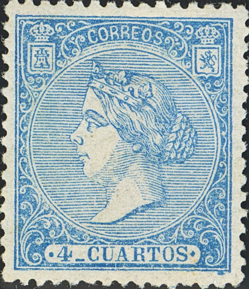 ★ 81. 1866. 4 cuartos blue. Intense color. MAGNIFICENT. Opinion. GRAUS.