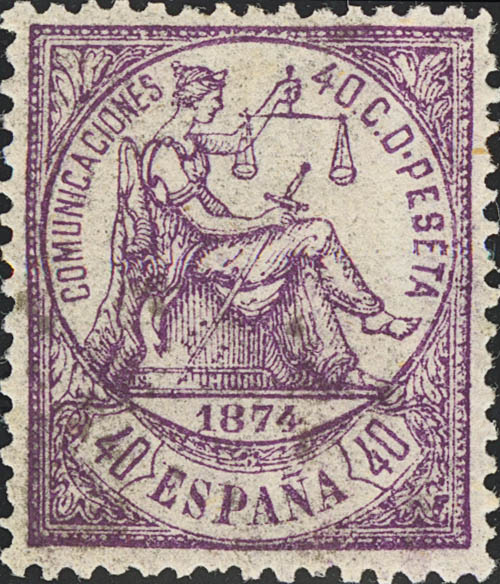 English ★★ 148. 1874. 40 cts violet. Exceptional centering and color. MAGNIFICENT AND VERY RARE IN THIS EXCEPTIONAL QUALITY. Cert. COMEX.