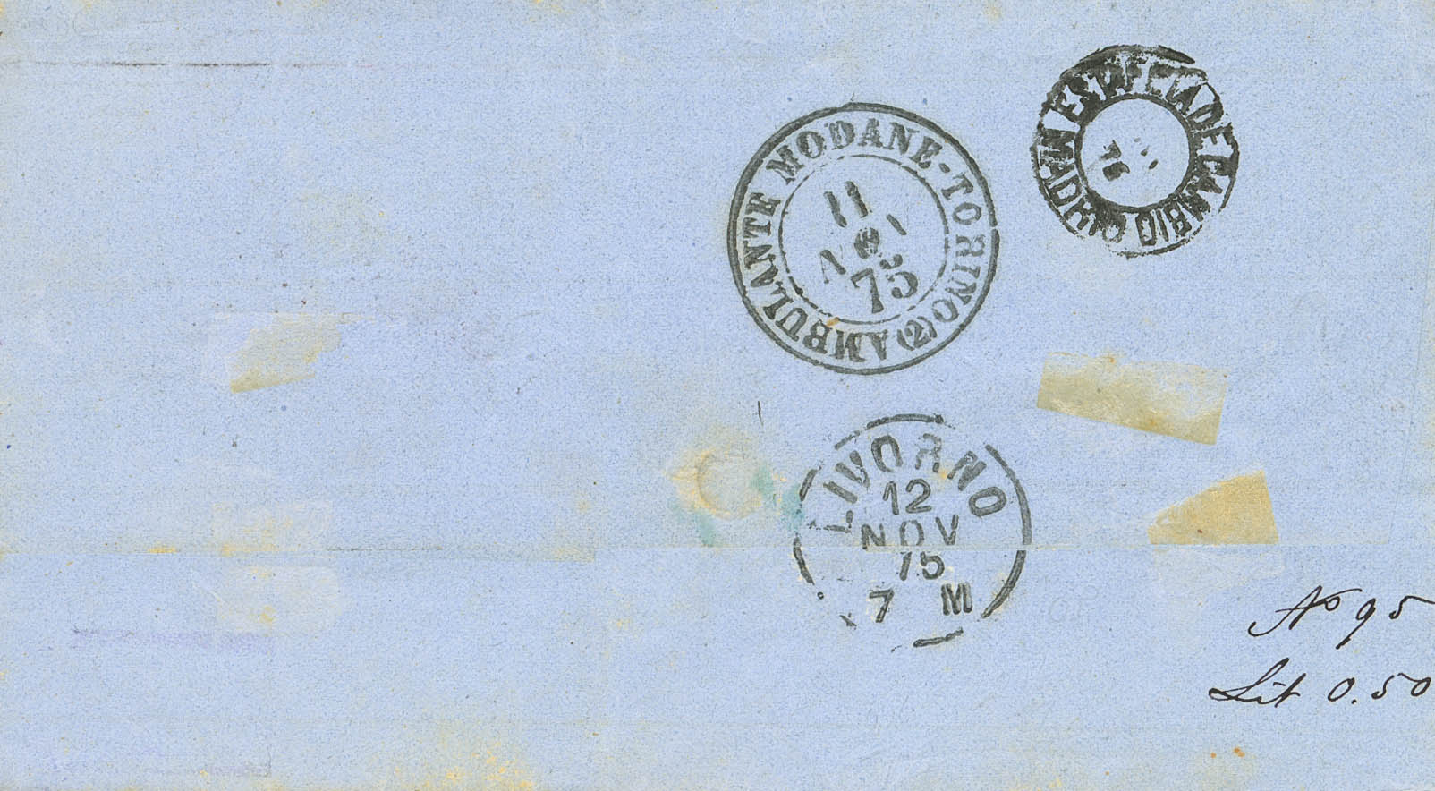 166. 1875. 25 cts pink (stamp washed and reused, mail fraud). Printed from CADIZ to LIVORNO (ITALY). MAGNIFICENT.
