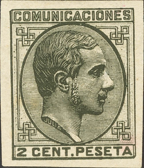 (★) 190ecs. 1878. 2 cts black. COLOR ERROR and NO TEETH. MAGNIFICENT. Edifil 2020: 85 Euros