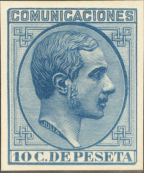 (★) 192P. 1878. 10 cts blue. PUNCH TEST. MAGNIFICENT AND RARE. (Gálvez, 1054)
