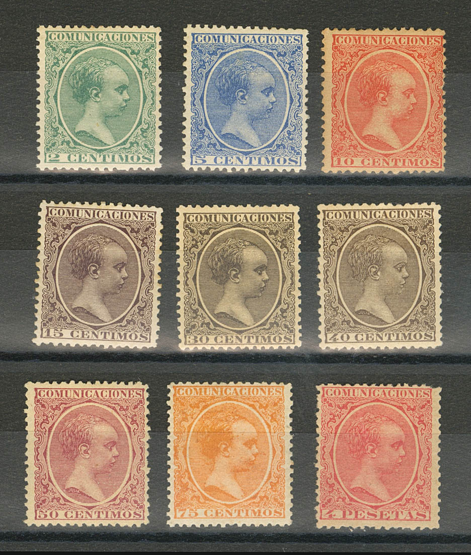 ★ 213, 214, 218/19, 22/25, 227. 1889. 2 cts, 5 cts, 10 cts, 15 cts, 30 cts, 40 cts, 50 cts, 75 cts and 4 pts. Very good centering and very intense colors in most values. MAGNIFICENT.