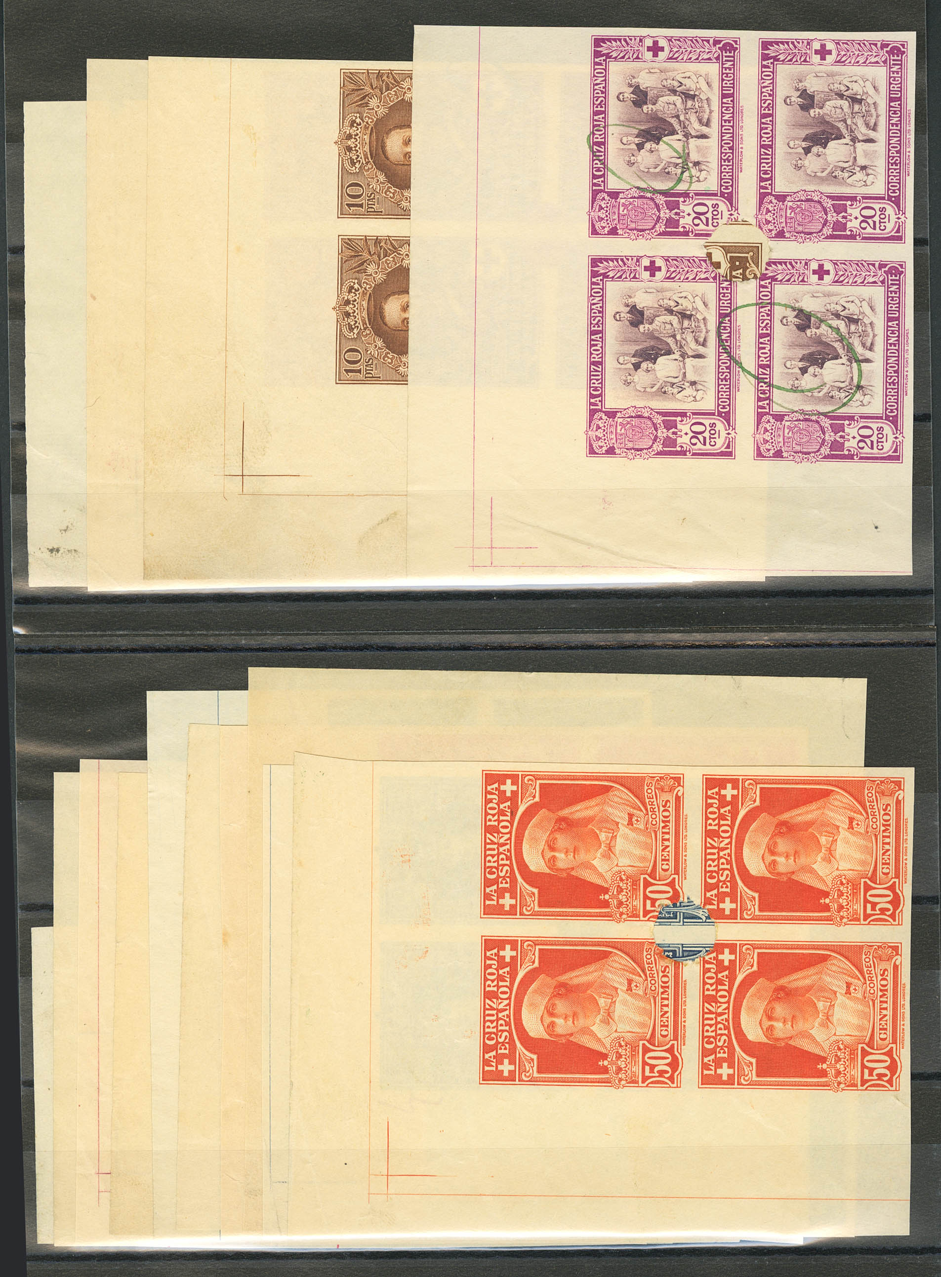 (★) 325/38MTas(4). 1926. Complete series, in block of four and leaf edge. WITHOUT TOOTH and with ANGLE DRILLING. MAGNIFICENT AND RARE. Edifil 2020: +2,100 Euros
