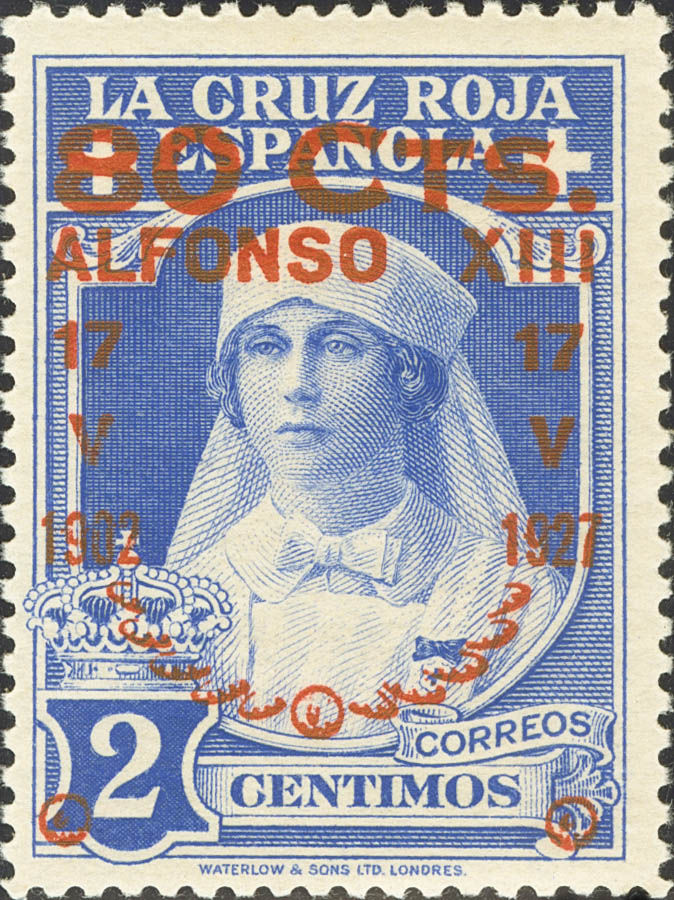 ★★ 382hz. 1927. 80 cts on 2 cts blue. Variety OVERLOAD OF ANOTHER VALUE. MAGNIFICENT AND RARE. Edifil 2020: +194 Euros
