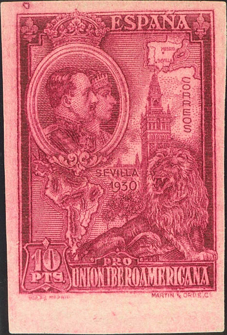 ★ 581ccds. 1930. 10 pts lila rosa. CAMBIO DE COLOR y SIN DENTAR. MAGNIFICO Y MUY RARO. (Gálvez 2813)