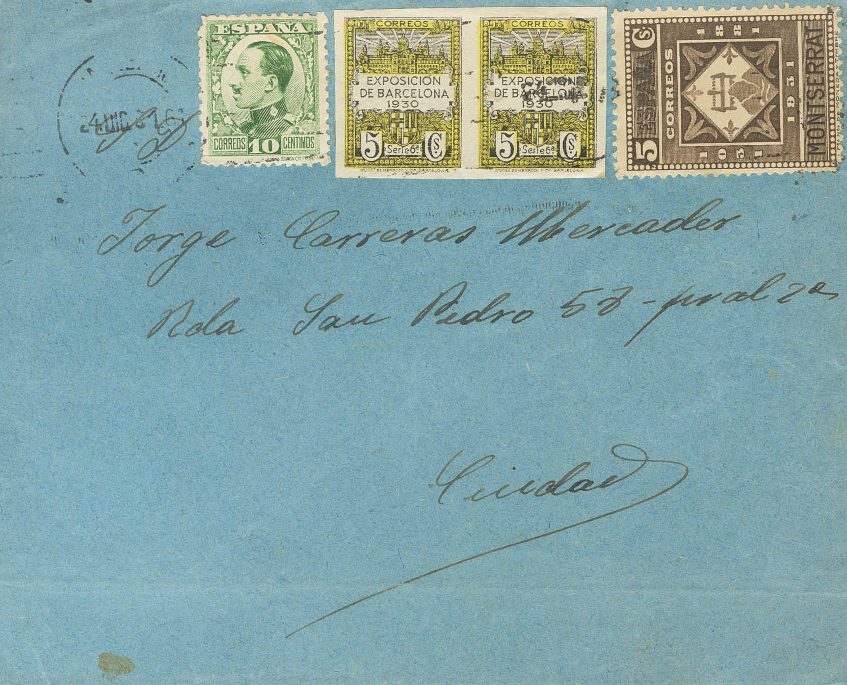 638, 492. 1931. 5 cts brown and black, 10 cts green and 5 cts yellow from Barcelona City Council UNTOOTHED. Philatelic Letter from the Interior Mail of BARCELONA. MAGNIFICENT AND UNUSUAL.