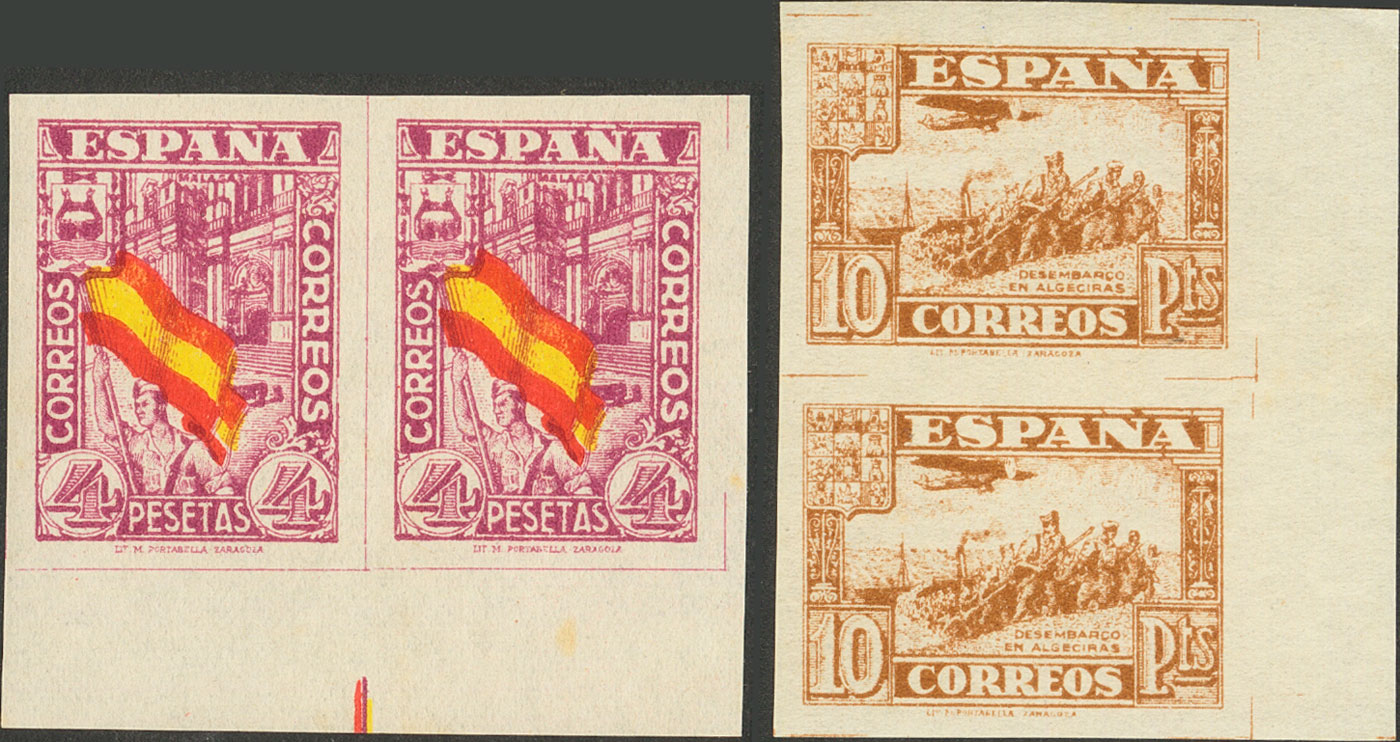 ★★ 802/13s(2). 1936. Complete series (including the 1 cts), pairs (the 60 cts without rubber and a 4 pts time spots stamp). WITHOUT TOOTH. PRETTY. Edifil 2022: +860 Euros