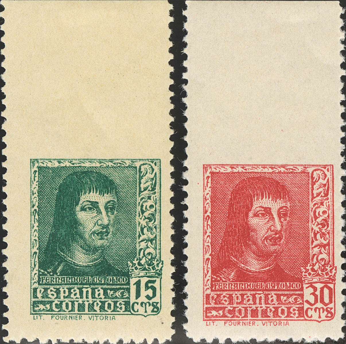★★ 841Asma, 844Asma. 1938. 15 cts verde y 30 cts rojo. SIN DENTAR EL MARGEN SUPERIOR. MAGNIFICOS, LOS DOS UNICOS VALORES CATALOGADOS POR EDIFIL. Edifil 2021: 116 Euros