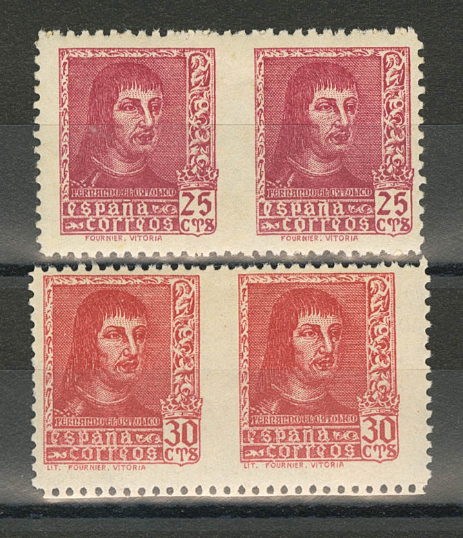 ★ 843sph, 844Asph. 1938. 25 cts lilac carmine and 30 cts red. NO TOOTHING BETWEEN THE SEALS. MAGNIFICENT. Edifil 2021: 142 Euros