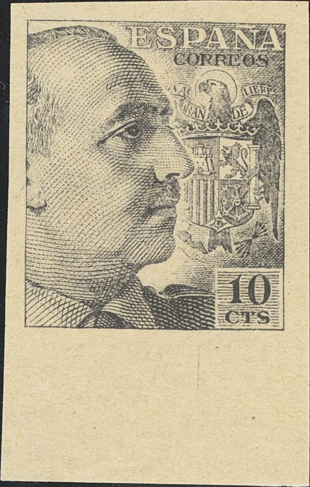 (★) 920ccs. 1940. 10 cts gris, borde de hoja. CAMBIO DE COLOR y SIN DENTAR. MAGNIFICO. Edifil 2021: +525 Euros