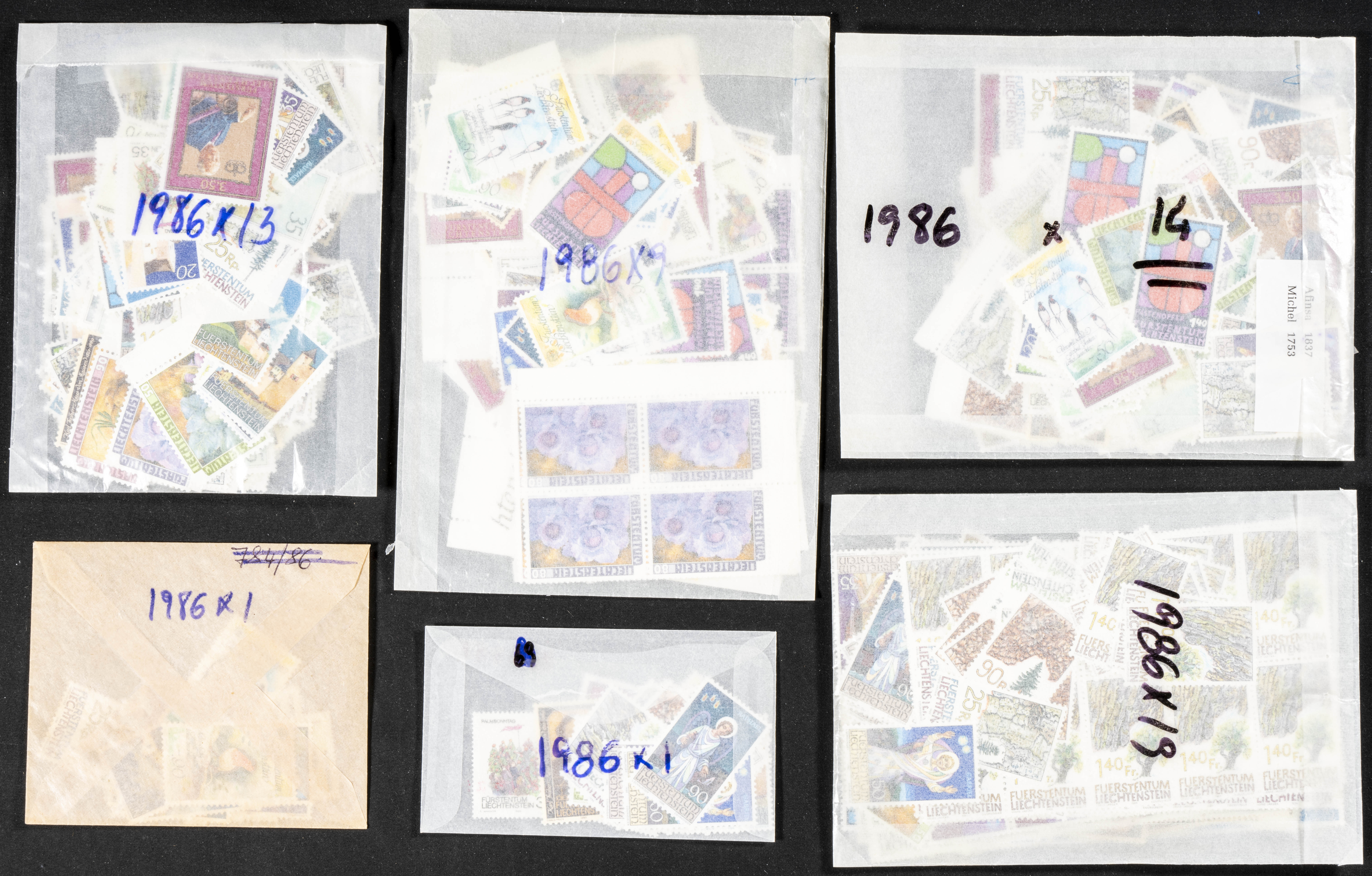★★Yvert 834/53(57). 1986. Fifty-seven complete 1986 set from Liechtenstein (in mixed envelopes). TO EXAMINE. Yvert 2019: 1,881 Euros