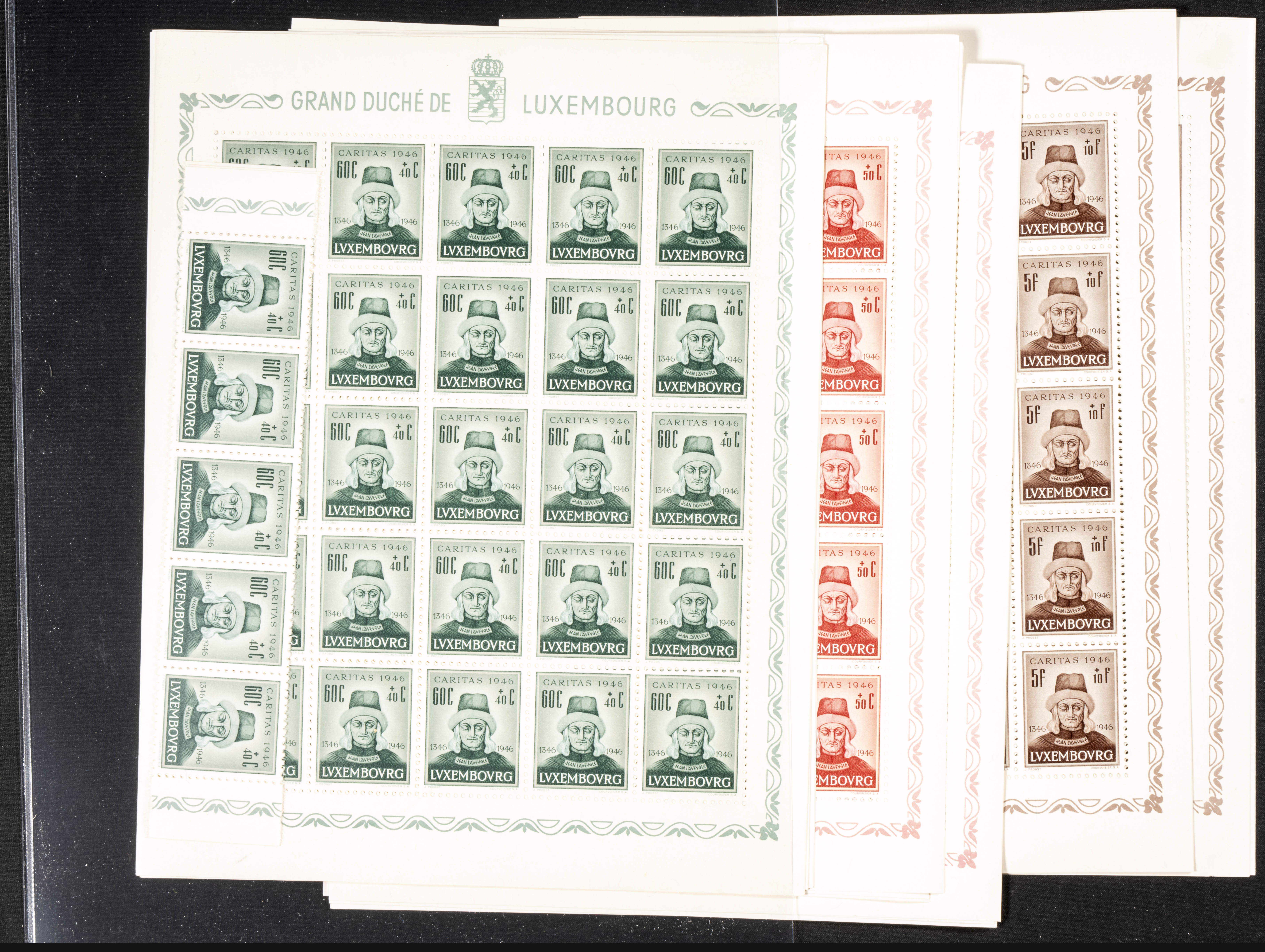 English ★★Yvert 388/91(117). 1946. Set of one hundred and seventeen complete series of CARITAS from Luxembourg, in new condition. TO EXAMINE. Yvert 2023: 643 Euros