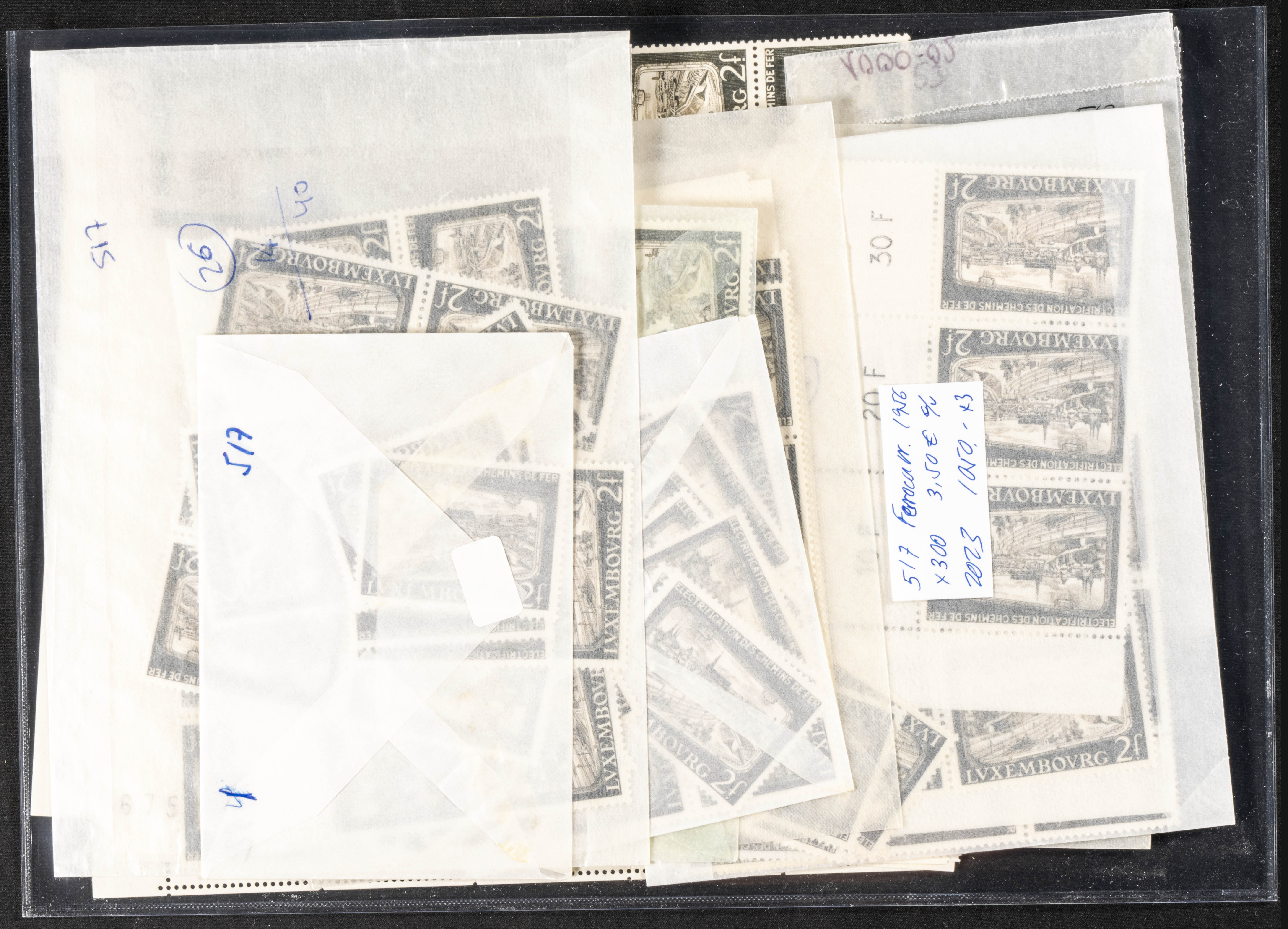 ★★Yvert 517(300). 1956. Set of three hundred stamps of 2 f RAILWAYS from Luxembourg 1956, in new condition. TO EXAMINE. Yvert 2023: 1,050 Euros