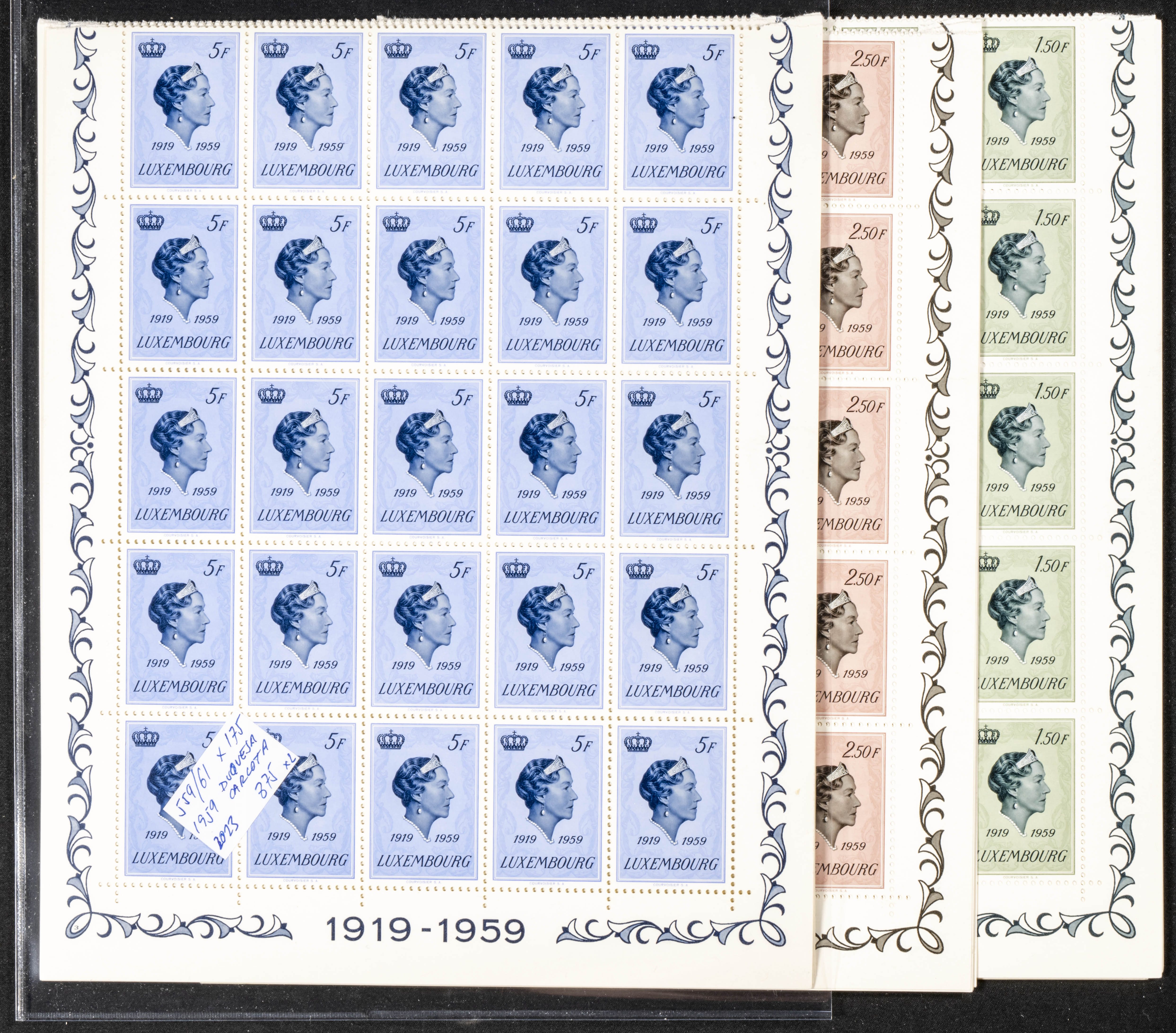 English ★★Yvert 559/61(175). 1959. Set of one hundred and seventy-five complete series of DUCHESS CHARLOTTE of Luxembourg 1959, in new condition. TO EXAMINE. Yvert 2023: 875 Euros