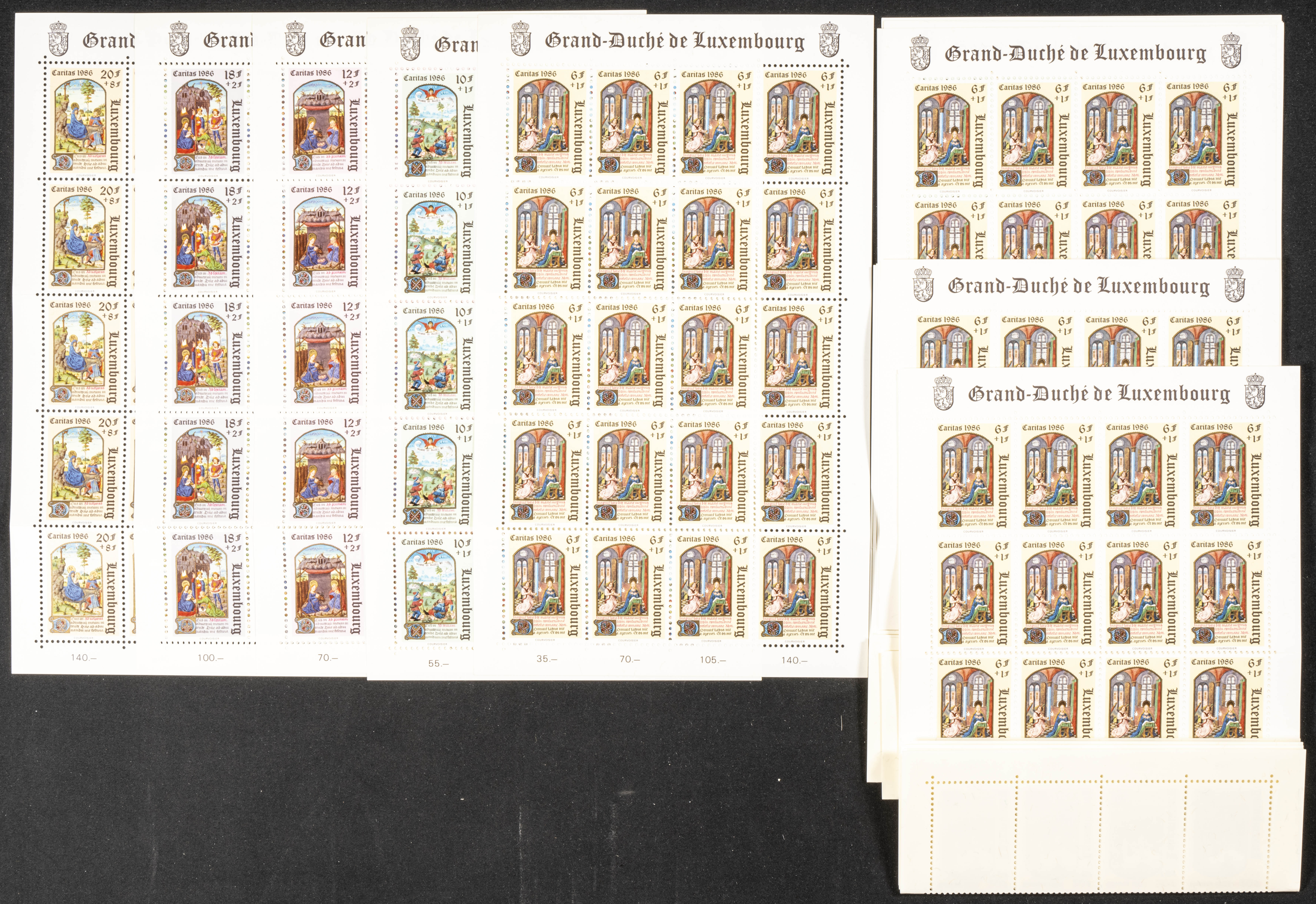 ★★Yvert 1113/17(80). 1986. Set of eighty complete series of CARITAS from Luxembourg 1986, in new condition. TO EXAMINE. Yvert 2023: 1,120 Euros