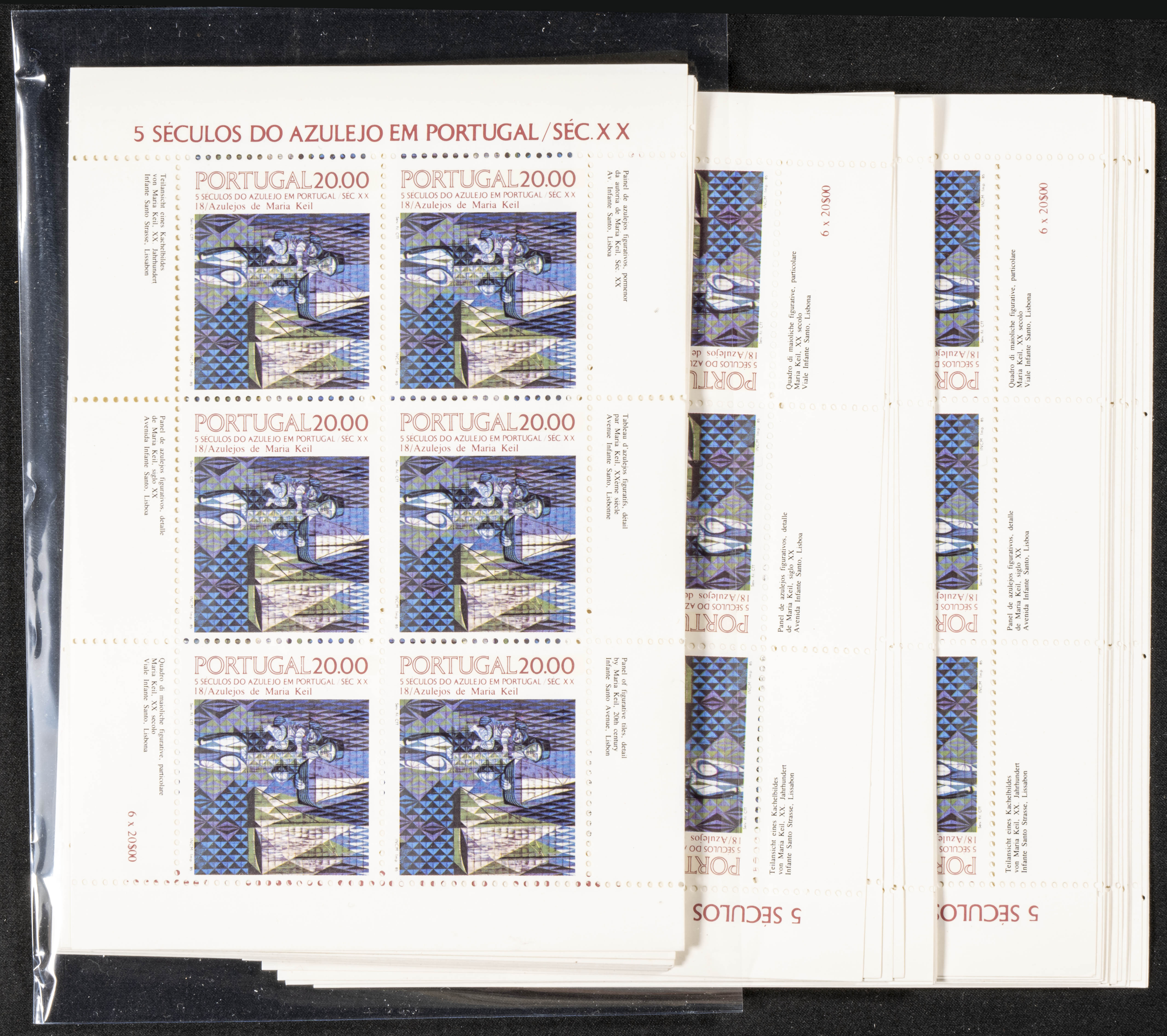 English ★★Yvert 1635a(50). 1985. Set of fifty mini-sheets of AZULEJOS (XVIII) from Portugal 1985, in new condition. TO EXAMINE. Yvert 2020: 450 Euros