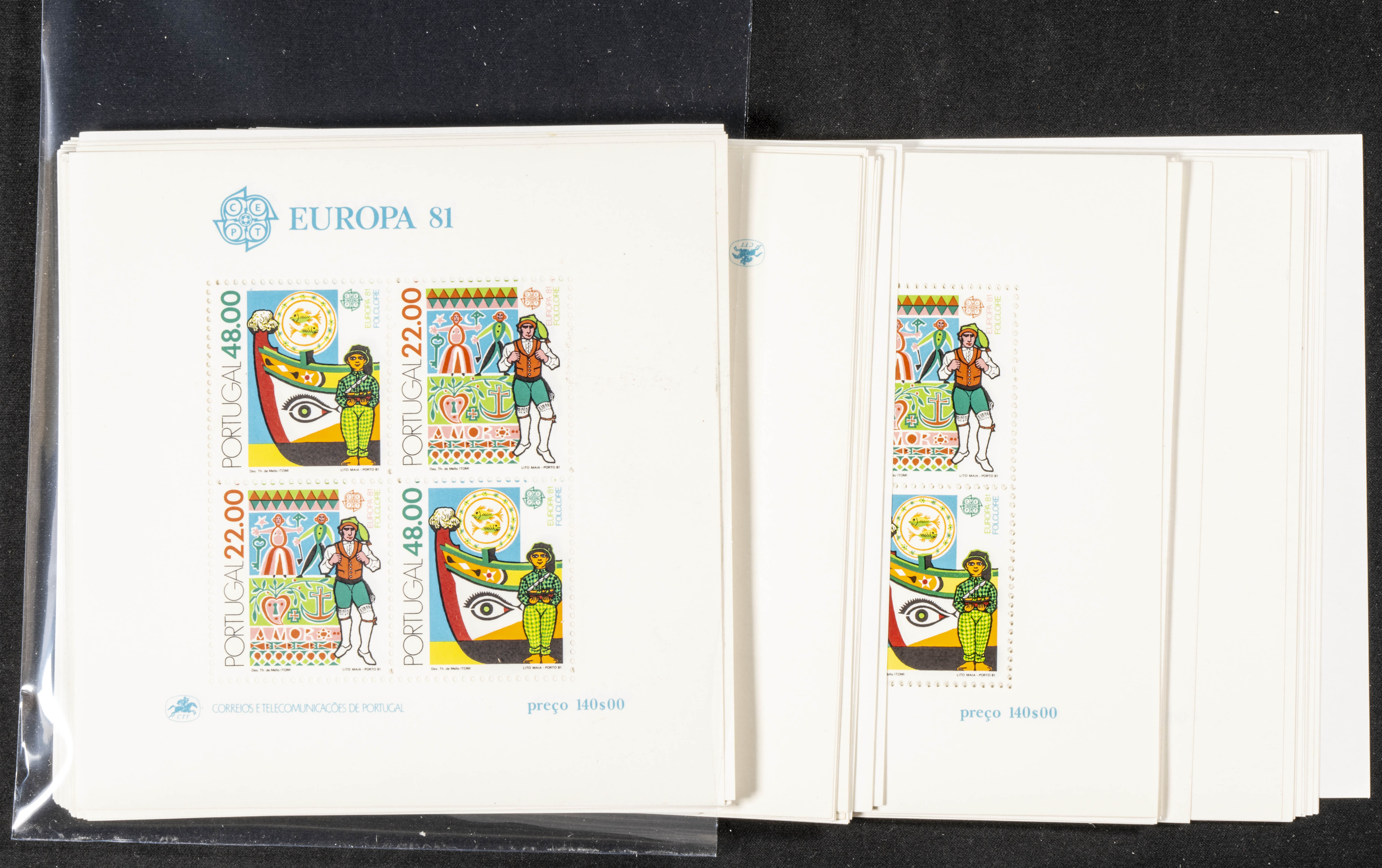 ★★Yvert HB33(85). 1981. Set of eighty-five block sheets of EUROPA 1981 from Portugal, in new condition. TO EXAMINE. Yvert 2020: 1,020 Euros