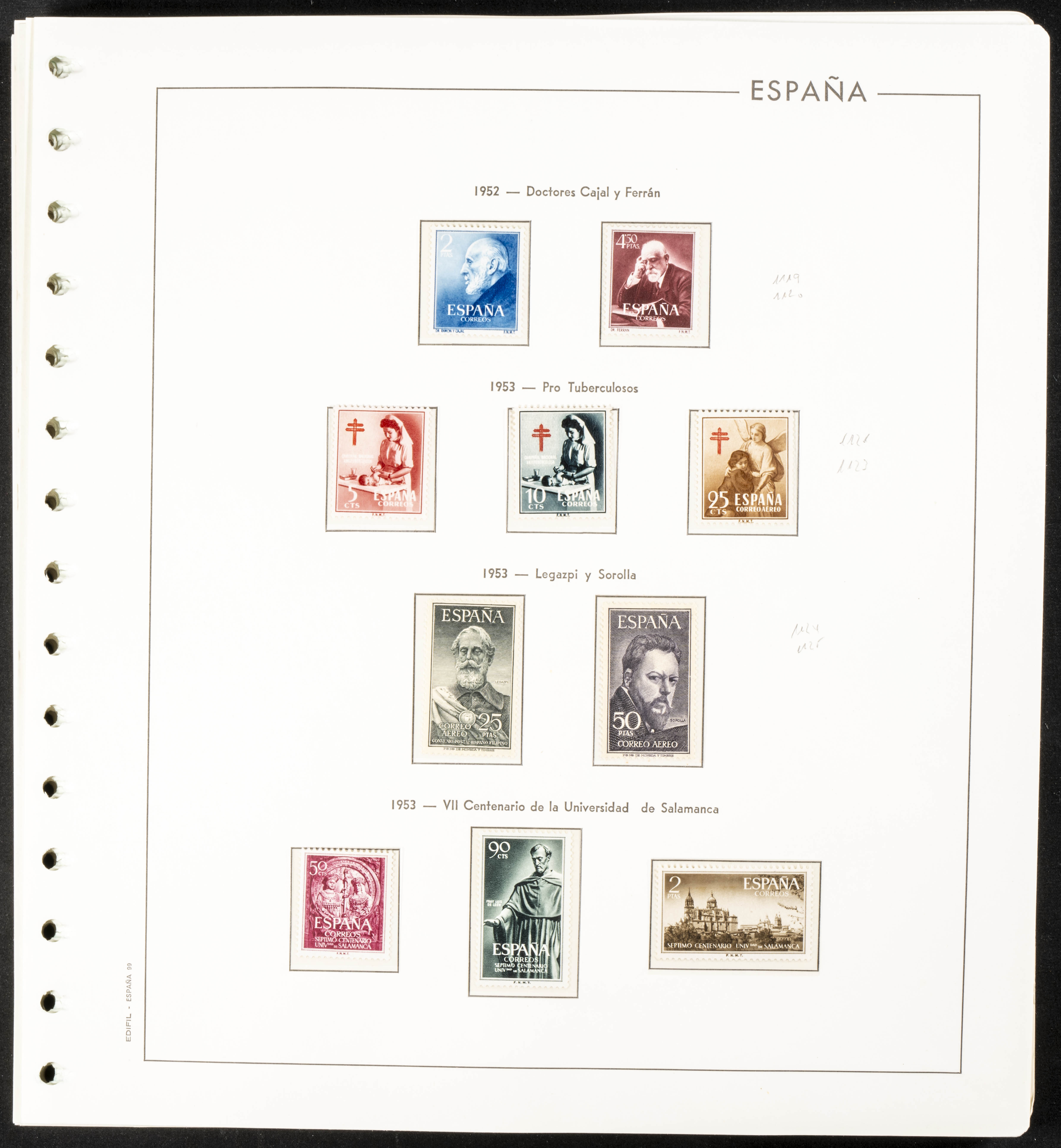 ★★(1950ca). Interesting, practically complete collection of the 2nd Centenary between 1950 and 1984 (only in the absence of Edifil 1083A/B), it obviously includes Caudillos a Canarias with and without number, Centenario and "Legazpi y Sorolla" (good quality in general). HIGHEST CATALOG VALUE. TO EXAMINE.
