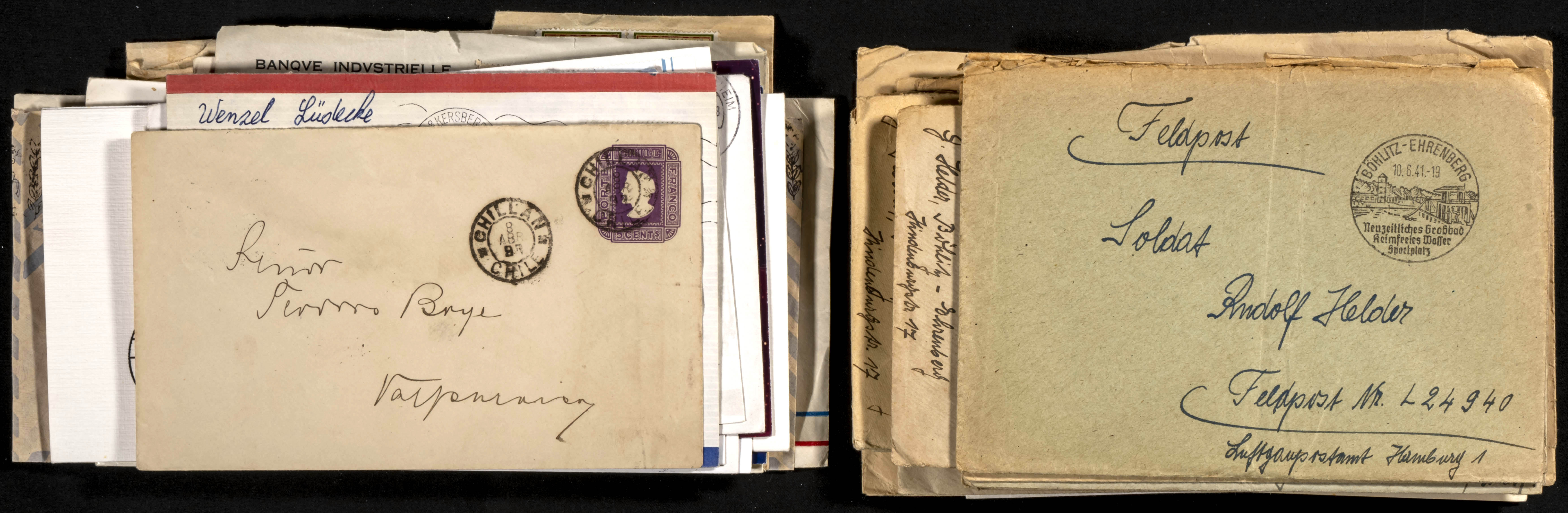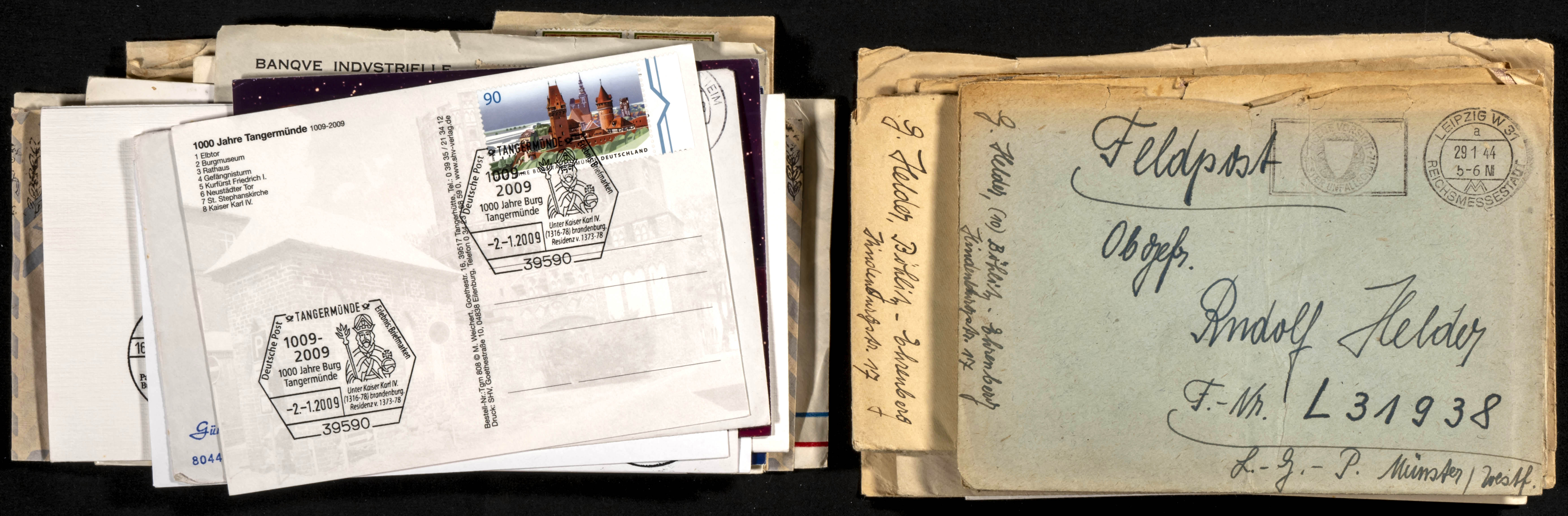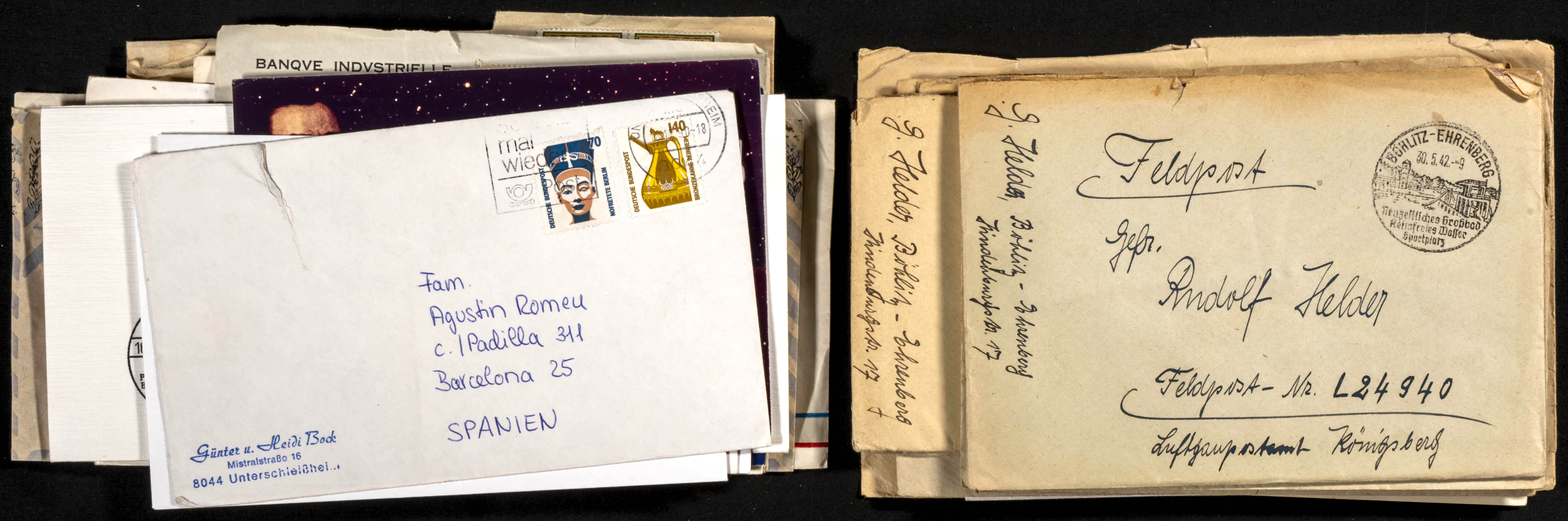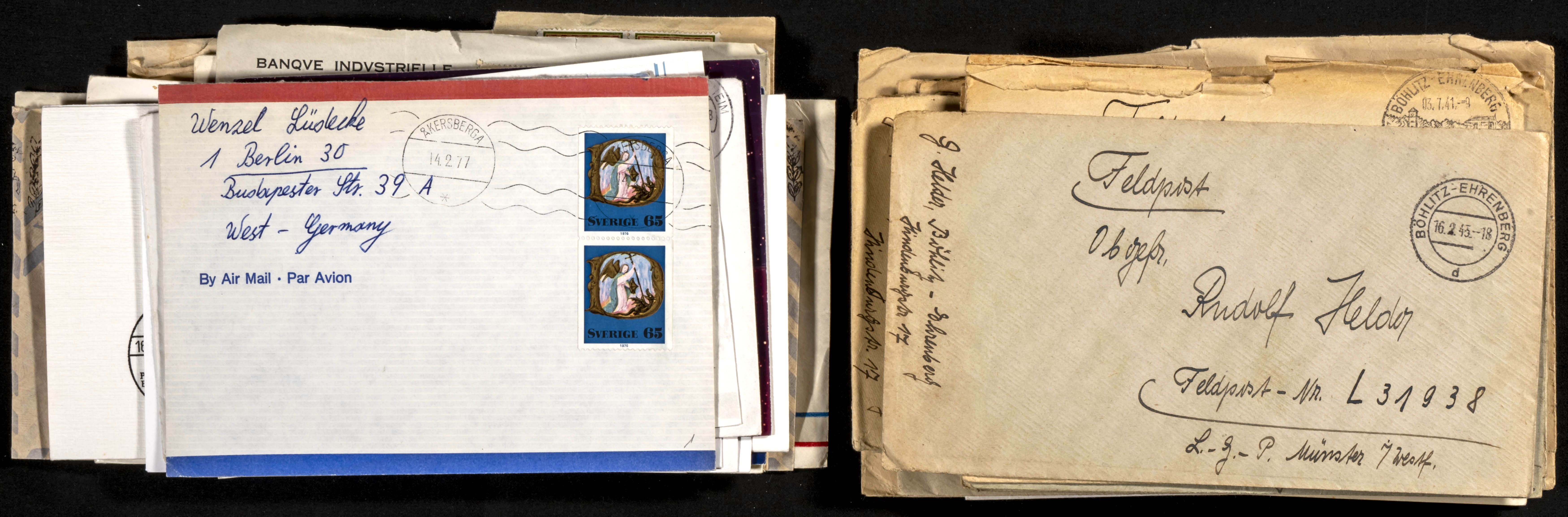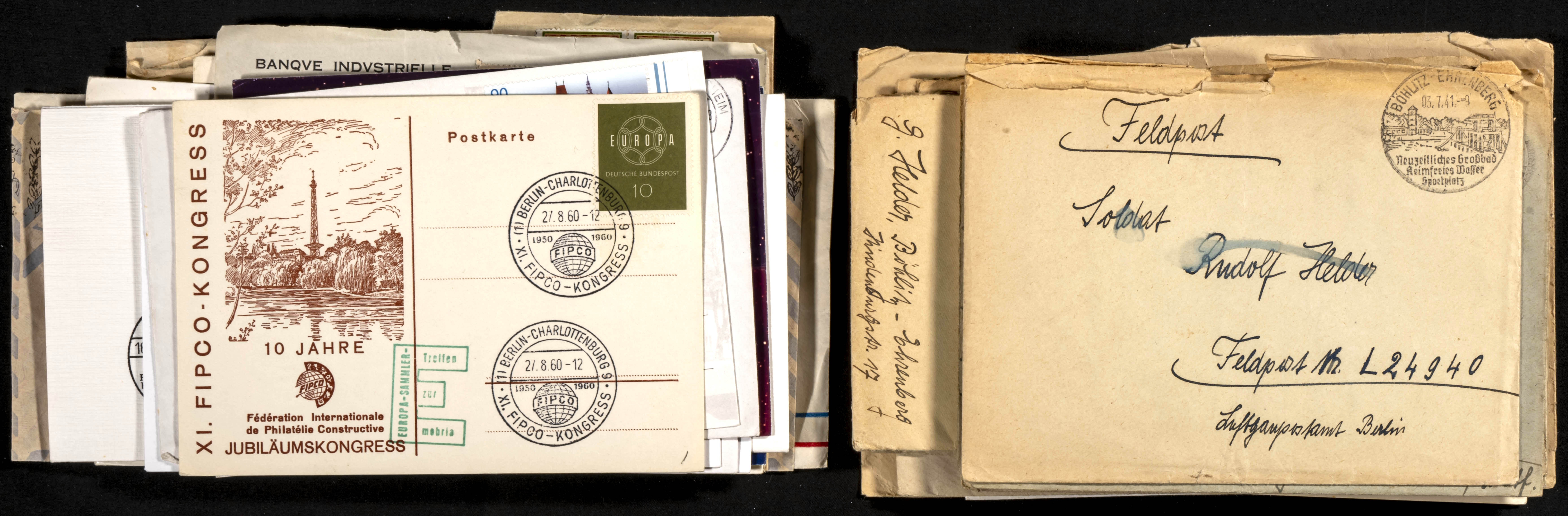 (1941ca). Set of eighteen complete free letters addressed to a German soldier (Feldpost No.: L24940 and L31938) between 1941 and 1944, plus more than thirty circulated letters, postcards and First Day Covers from Germany and other countries. TO EXAMINE.