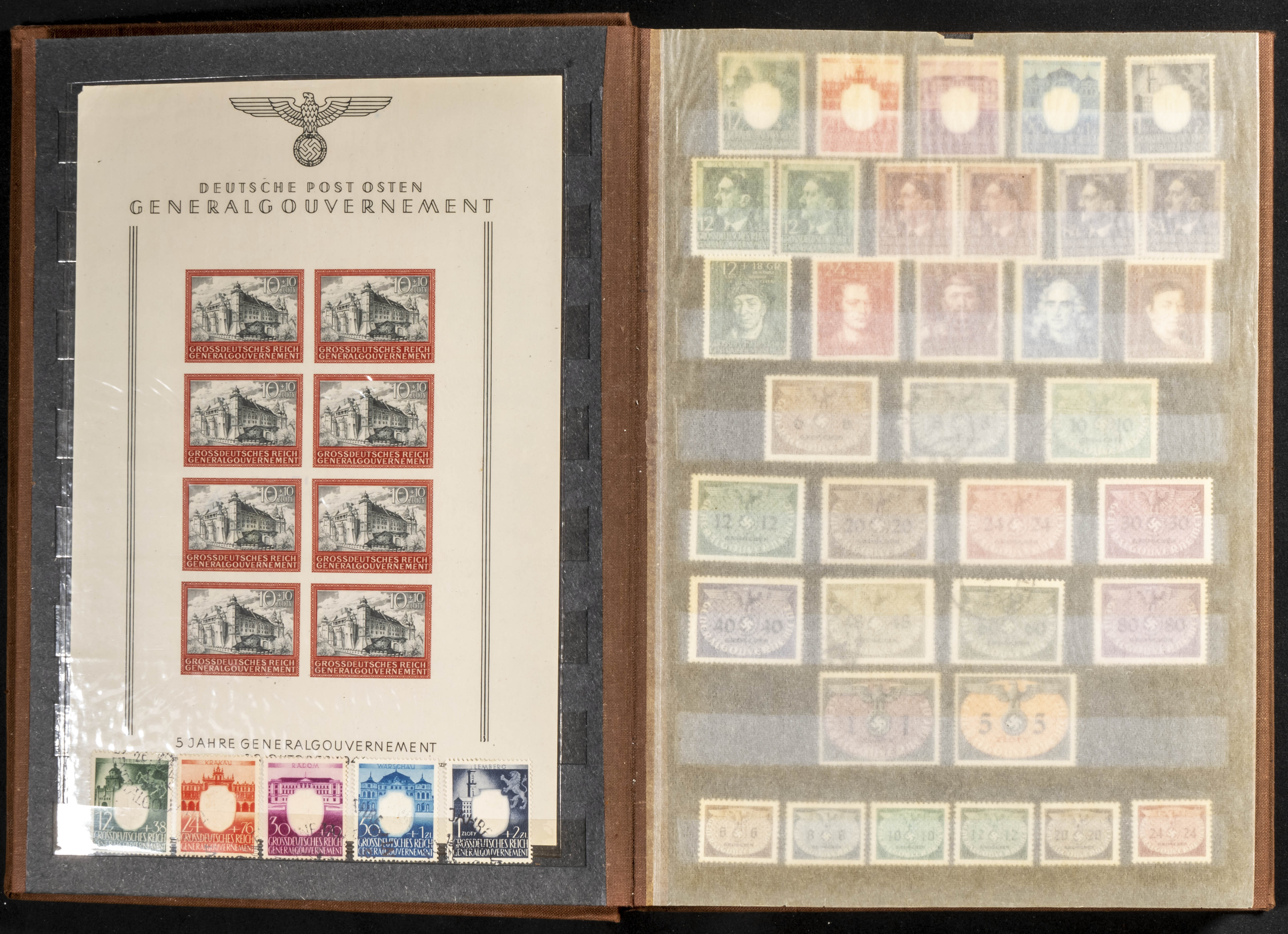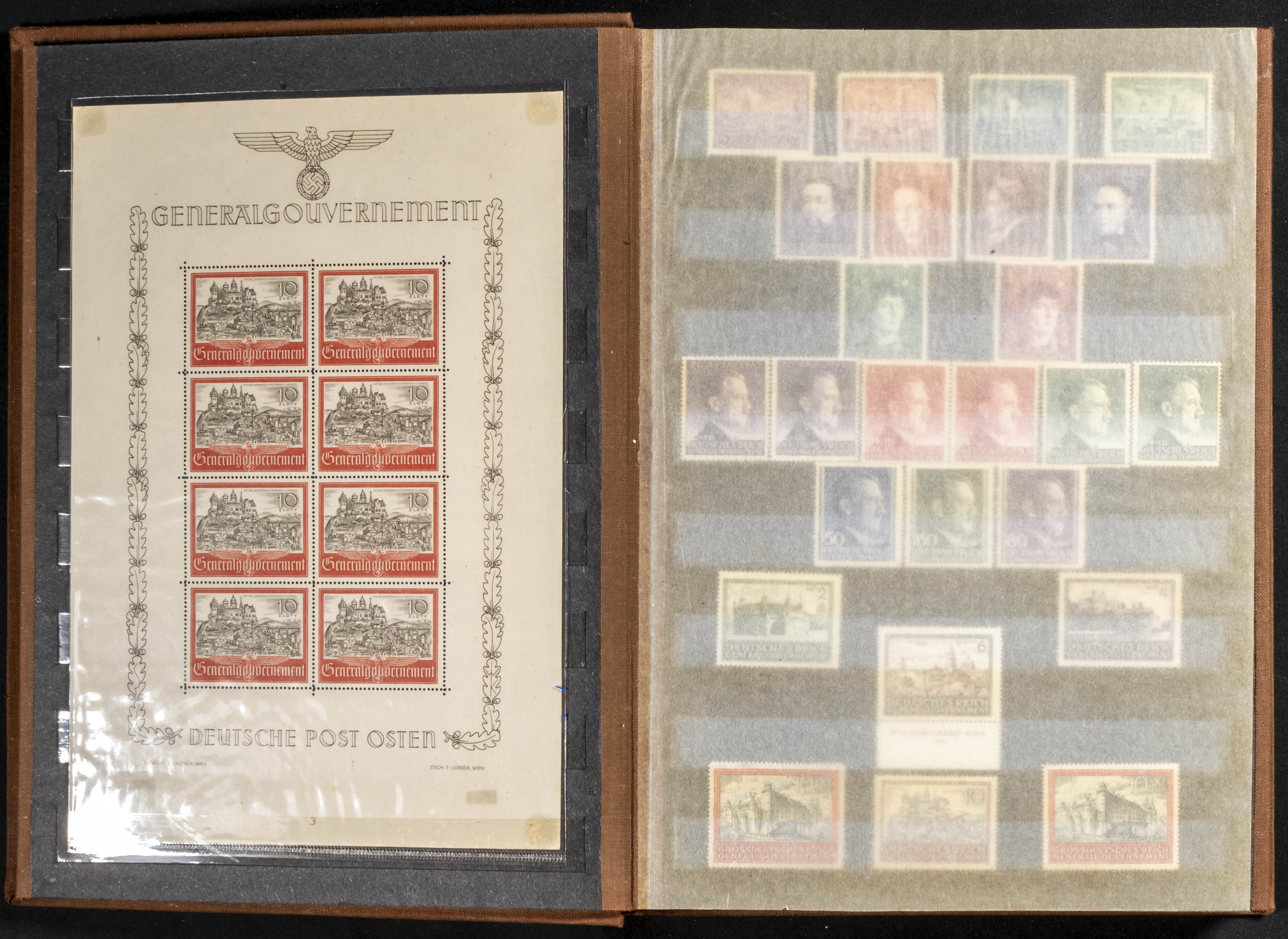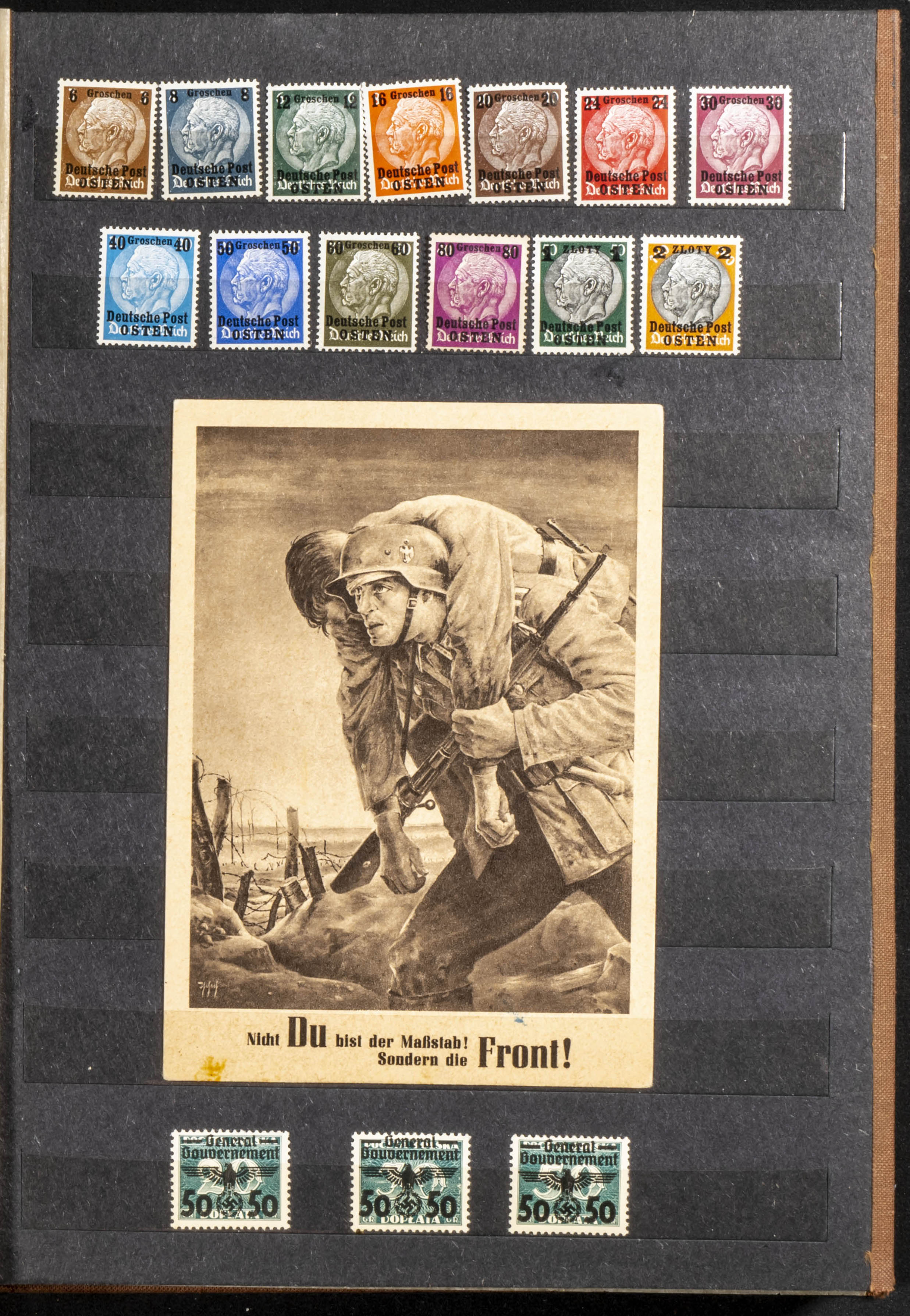 ★/(1939ca). Interesting and very complete collection of German Occupations of the Third Reich, in new and used, including block sheets and some postcards or prints with military or Hitler scenes. TO EXAMINE.