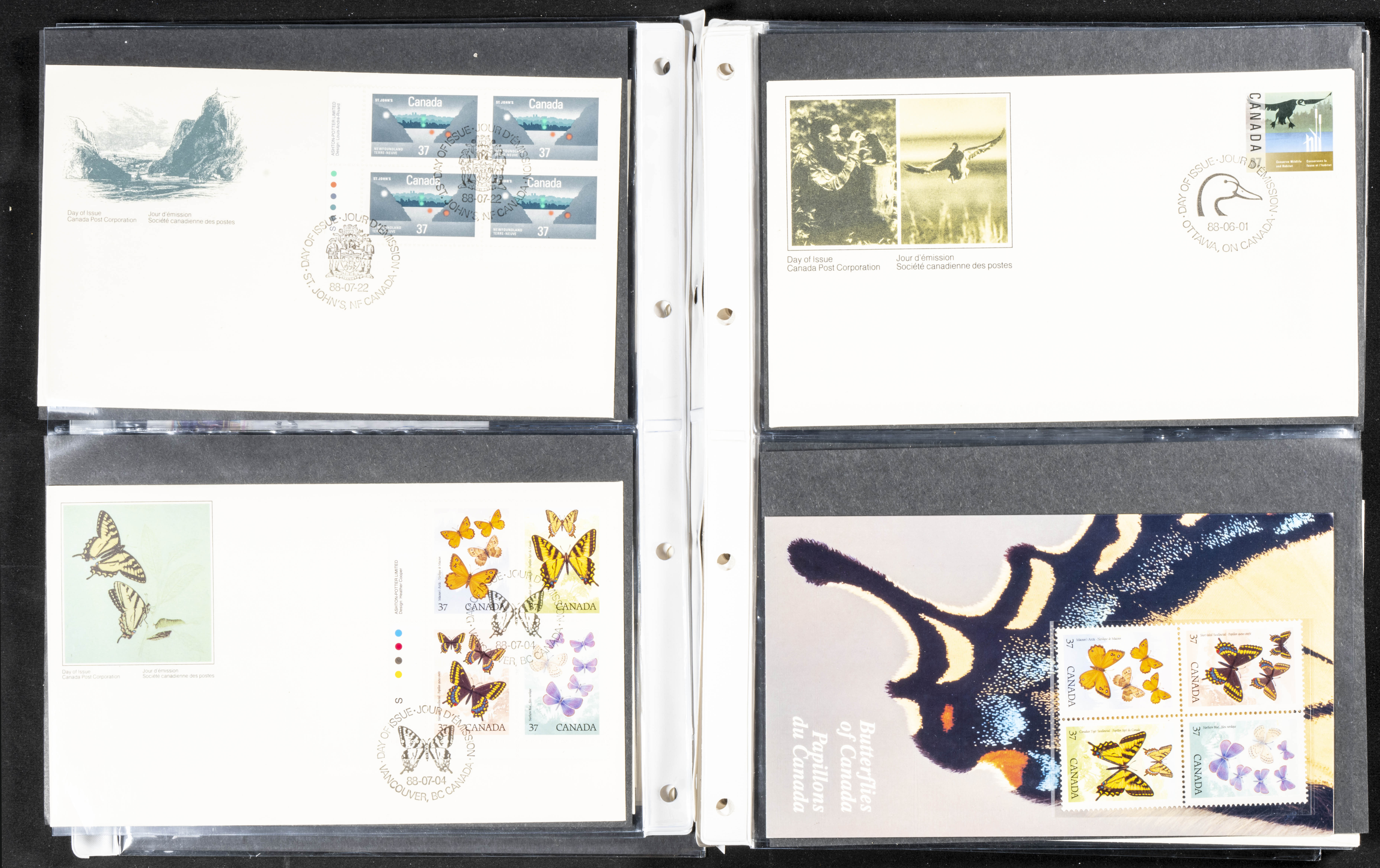 ★★(1986ca). Set of complete years of Canada between 1986 and 1992, in new condition and mounted in the annual books, includes more than thirty First Day Covers. TO EXAMINE.