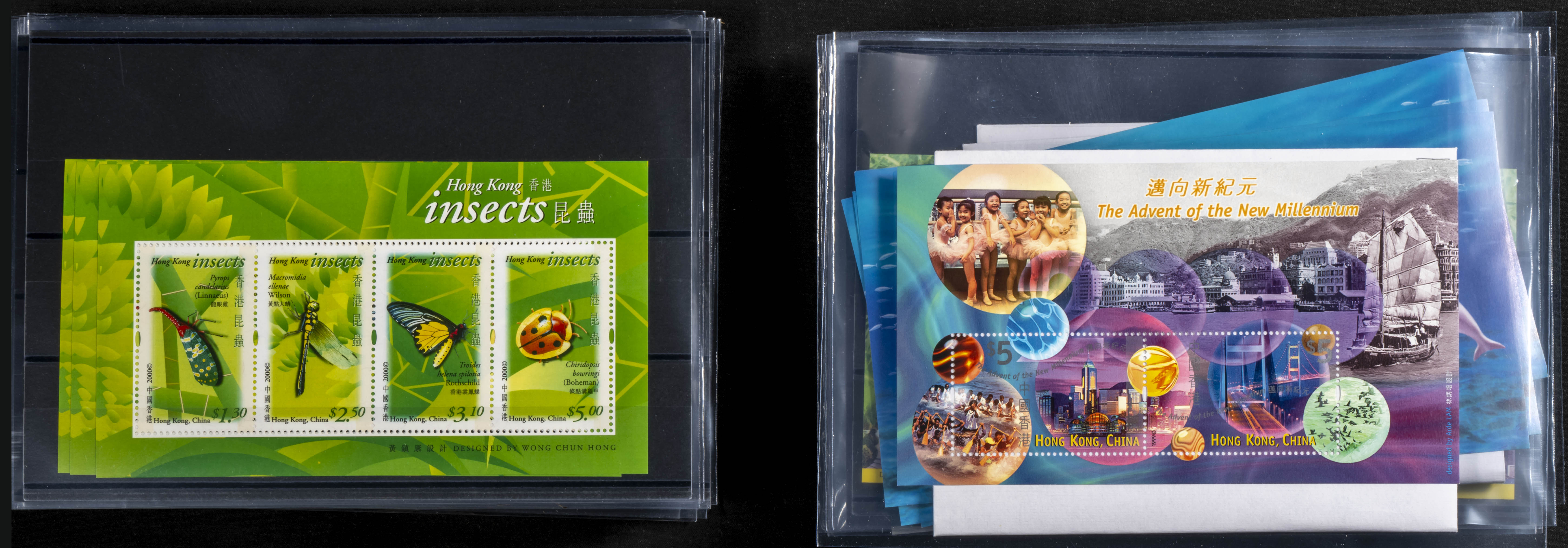 ★★(1990ca). Set of complete series, cards and block sheets from Hong Kong between 1990 and 2001, in new condition and with some repetitions of up to fifty units of each. TO EXAMINE. Yvert 2020: +1,350 Euros