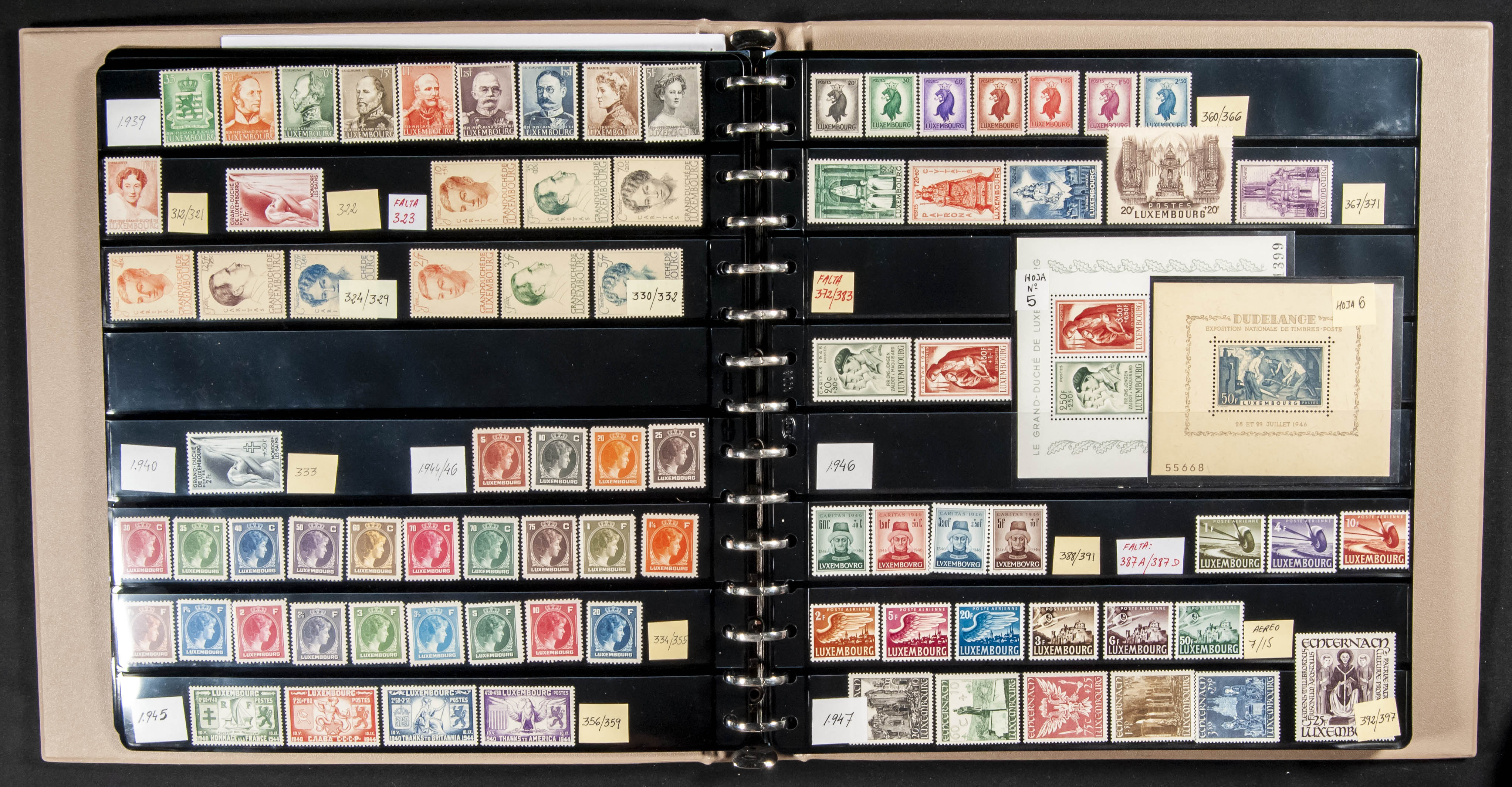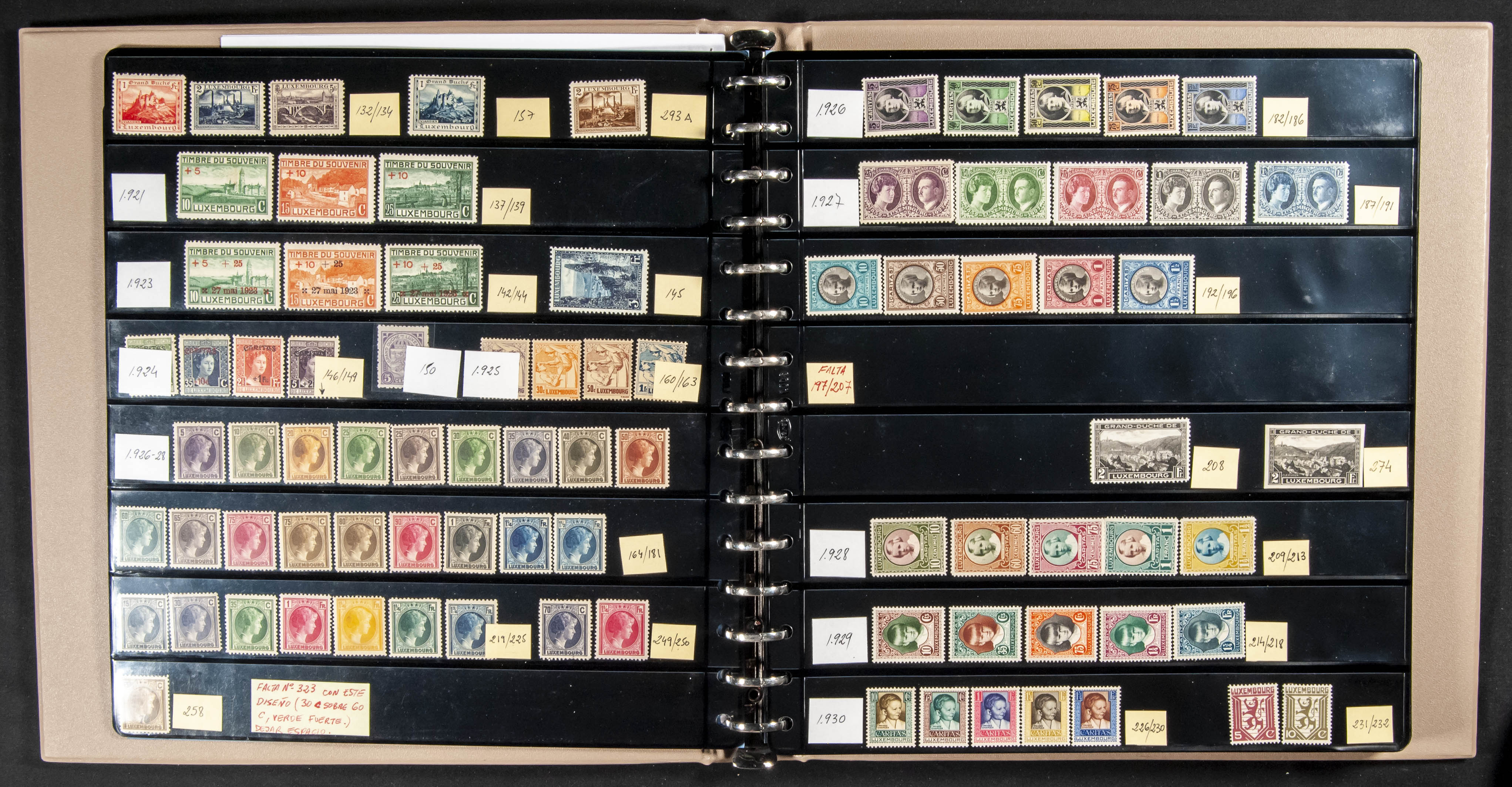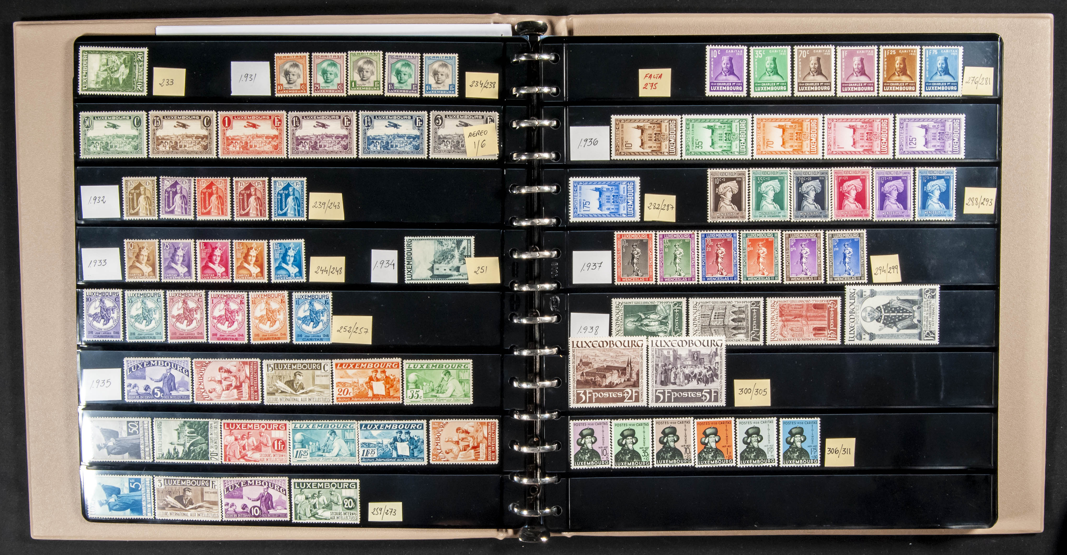 ★★/★(1907ca). Interesting, practically complete collection from Luxembourg between 1907 and 1999, in new condition and up to 1950, most of the series with stamp fixers, highlighting the Intellectuals series from 1935 and block sheets from 1921 (Yvert HB1) and 1923 (Yvert HB2). HIGHEST CATALOG VALUE. TO EXAMINE.