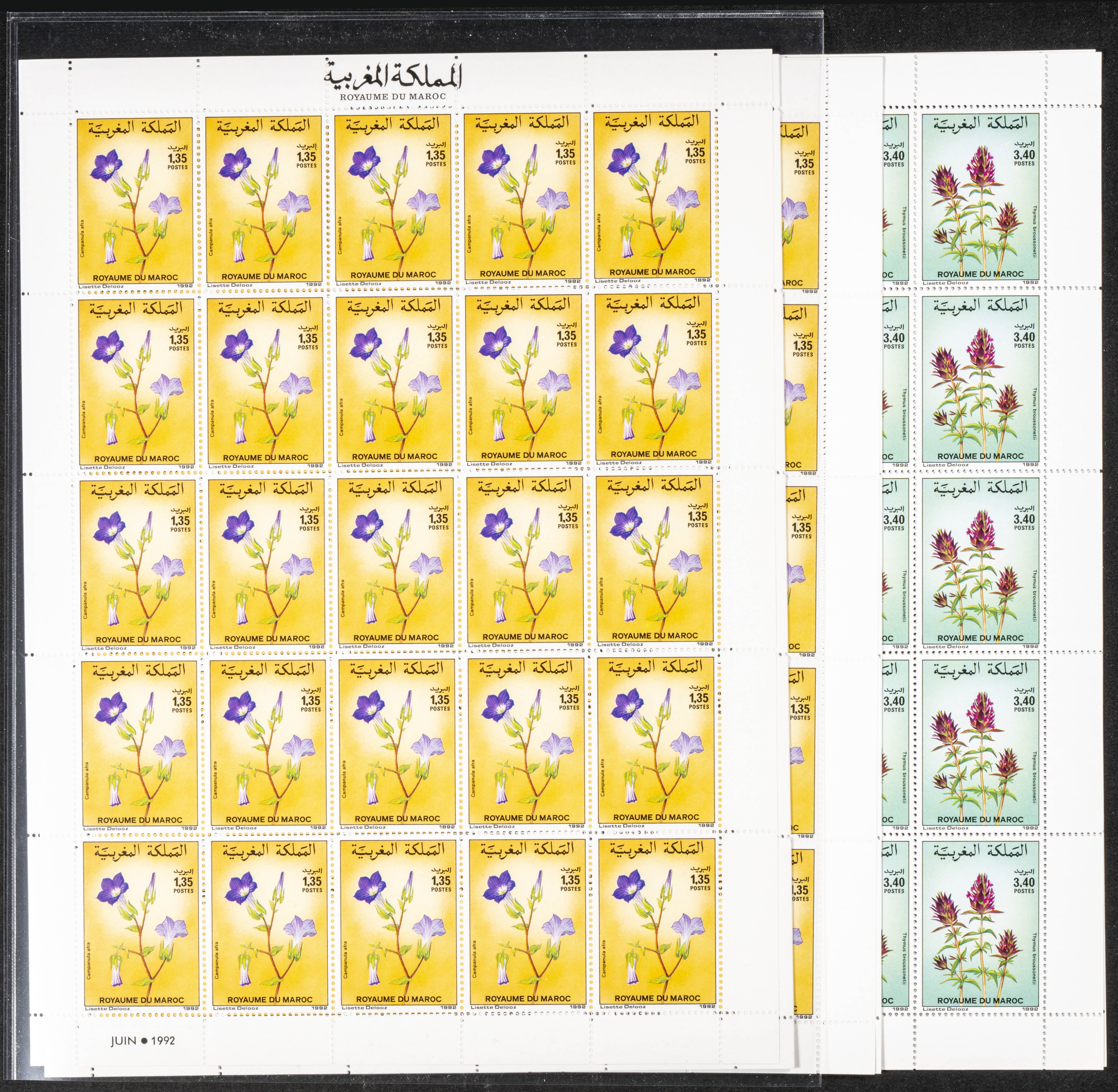 ★★Yvert 1124/25(200). 1992. Set of two hundred complete series of FLORA from Independent Morocco 1992, new and in sheets. TO EXAMINE. Yvert 2019: 600 Euros